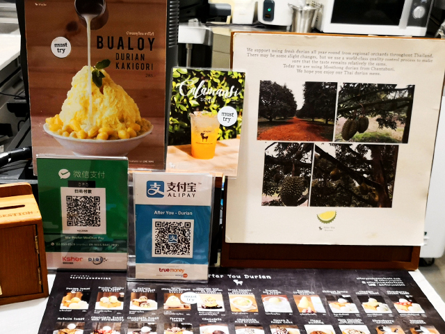 After You是没有榴莲刨冰的,要找After You Durian,这是after you2017年五月新开的家开的一家专卖榴莲甜品的店,BTS到siam站下,店在Siam Paragon一层,After You原店铺隔壁,找到After You,再往里走。店面装修清新,分为内外两部分,外面区域不大,大概有3张桌子。内部小屋子则是一个完全封闭的空间,也有4~5张桌子.
