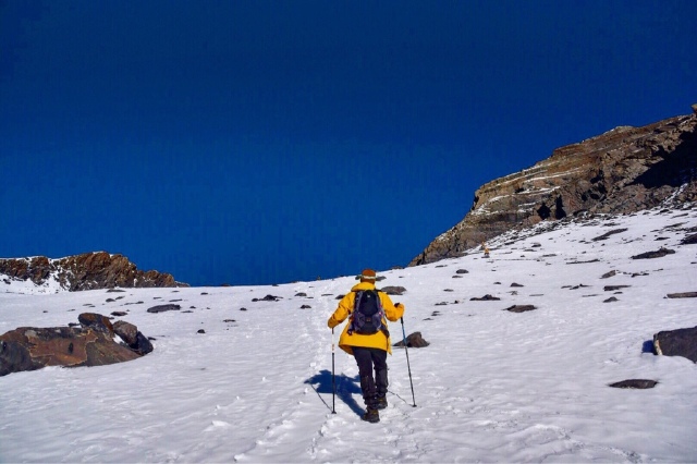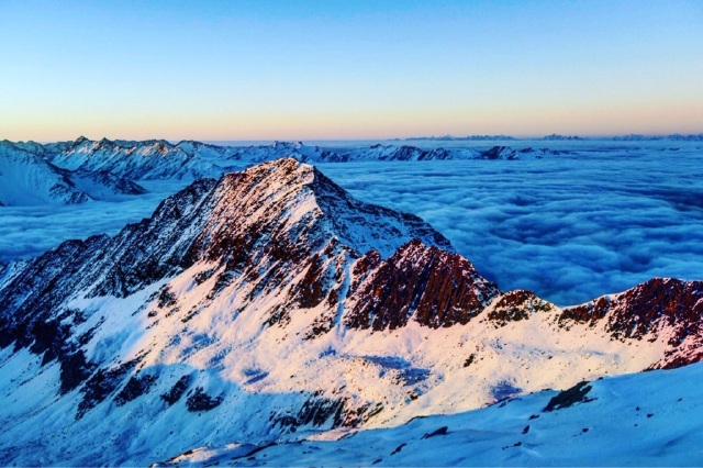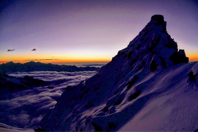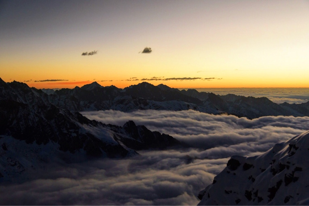 到达大本营后,凌晨1:20起床,起床收拾冲顶装备。凌晨3点出发,历时8小时回到大本营。全程穿着狼爪的装备攀登二峰,与上次相比感觉轻便不少,一路上甚至觉得有点热!虽然山体被大雪覆盖,增加了攀登的难度,但天气也很给力,日出云海日照金山一样不少,打个猫头,毕竟猫头也很久没和大家见面了,😄