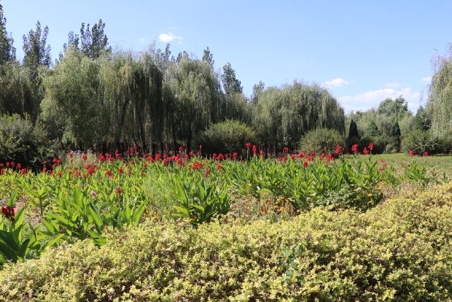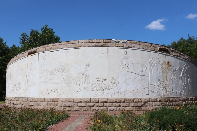 公园的大门很独特,是用原木搭成的,大门里面是一个巨大的时钟,时钟的后墙上有一副巨大的浮雕。时钟后面是通向园中的大道。园内花木错落有致,一片片的花木交叉混种,更显得美丽漂亮。漫步在园中呼吸着新鲜的空气,令游客们心旷神怡,心情舒畅。