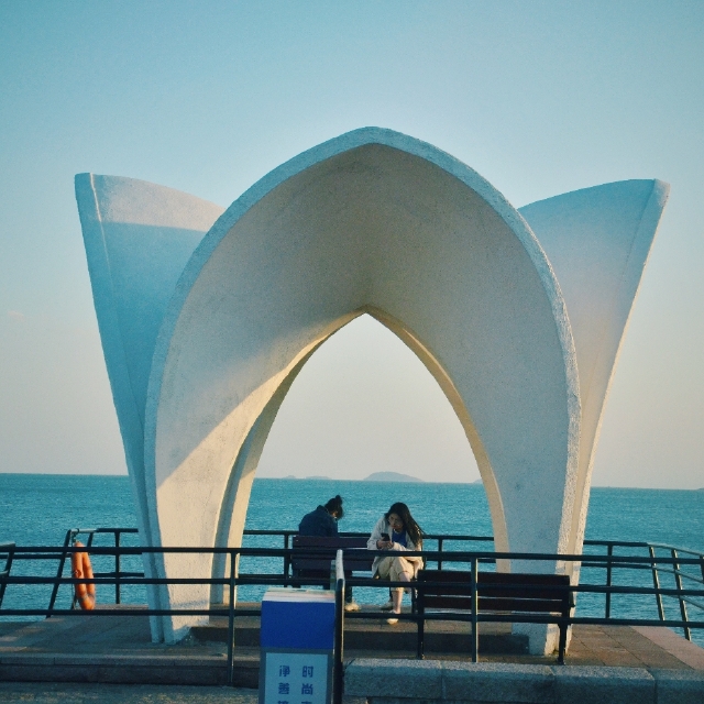 岛上有一个小型的广场。这里视野开阔,是许多摄影师定点打卡的地方。在广场的中心,竖立着一座雕像。小青岛也叫琴岛,这座雕像的名字叫琴女,正是琴岛名字的由来。传说种,天上有一位弹琴的仙女爱上了一位渔夫,为此她来到这里,用琴声为爱人导航。后被玉皇大帝发现,琴女便殉情于此。