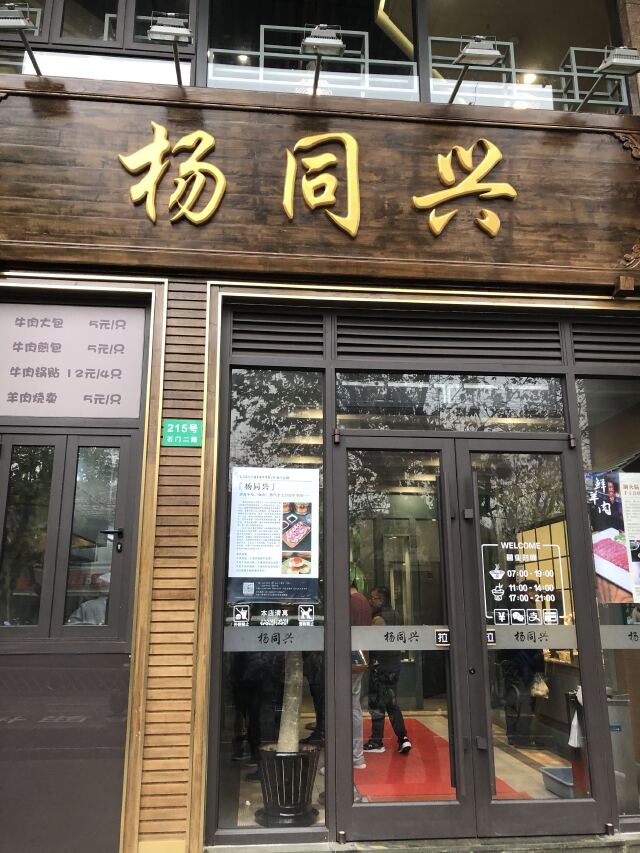杨同兴是一家上海老字号的清真餐厅,位于上海静安区石门二路215号,上海地铁2,12,13号线到南京西路站,然后走过去大概10分钟。这家店现在已经装修过了,环境要比以前干净很多。我也是因为上海的人气美食节目而去的,他们家的牛肉煎包、牛肉锅贴是特色,有点甜甜的味道,牛肉煎包午餐时间是需要等的,牛肉锅贴等的时间就更久了。不过最独特的是他们家的牛肉小馄饨,这是我第一次吃牛肉馅的小混沌,味道还挺好的。他们家的红烧牛肉面味道也很好的,汤底的味道有点浓郁。听那些老吃客们说,装修好之后的味道和以前有点不一样,以前要更加好。
