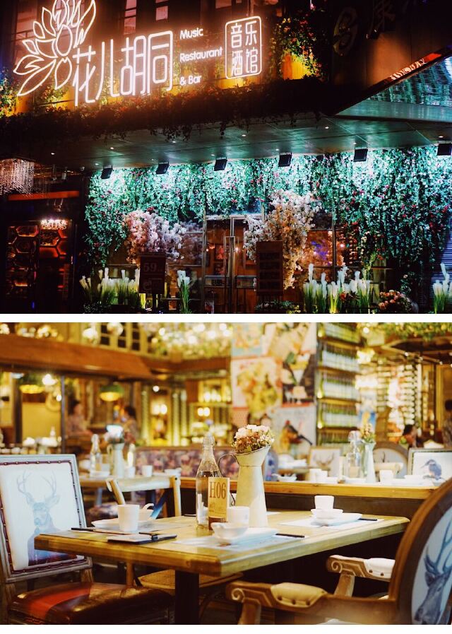 [ 环境 ] 真的好像来到了花儿的世界,满眼都是花儿,座椅装修很古典高雅,面积很大,还有乐队表演。有大屏幕,有散座也有包间,刚入门的地方是吧台,喝酒也可以。