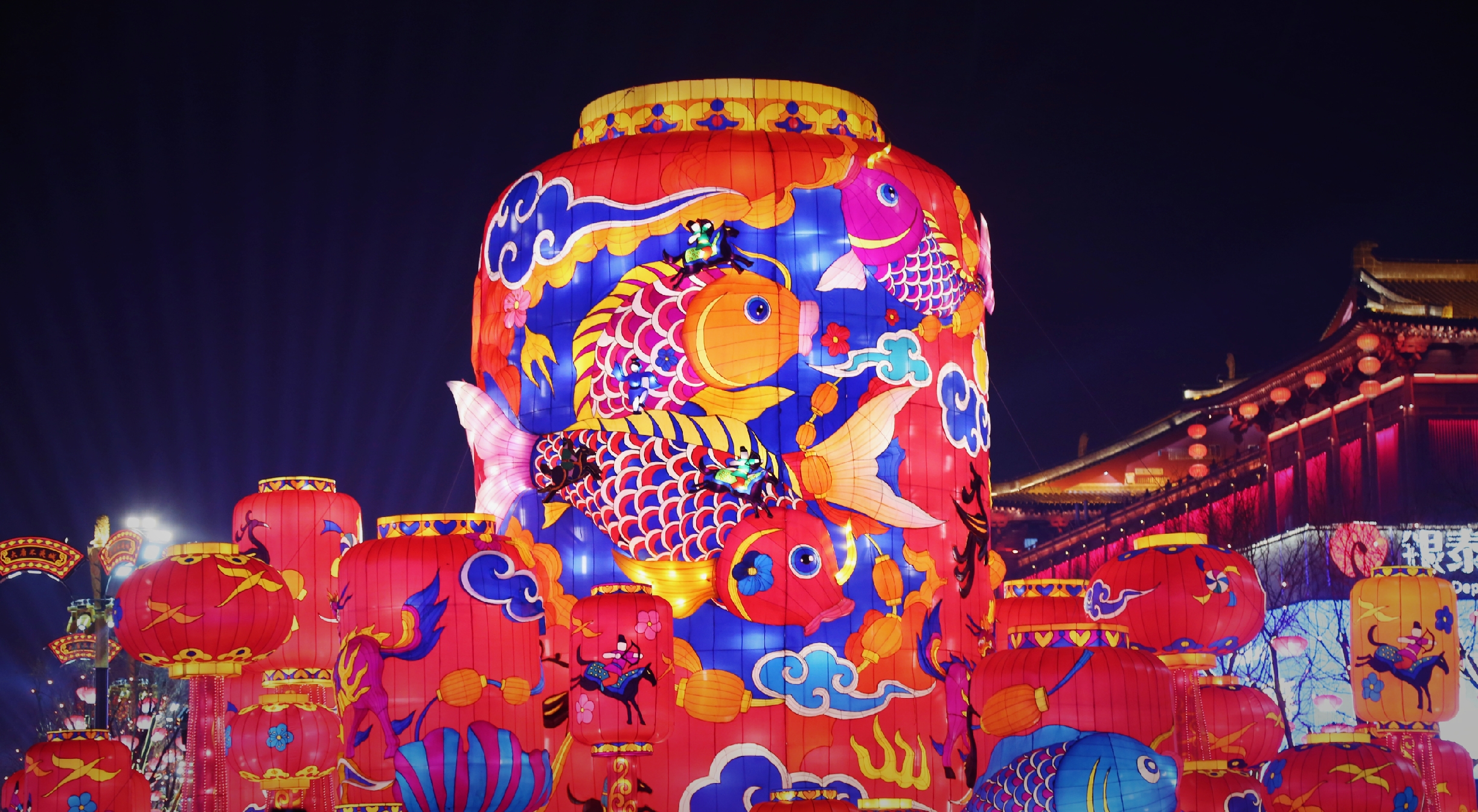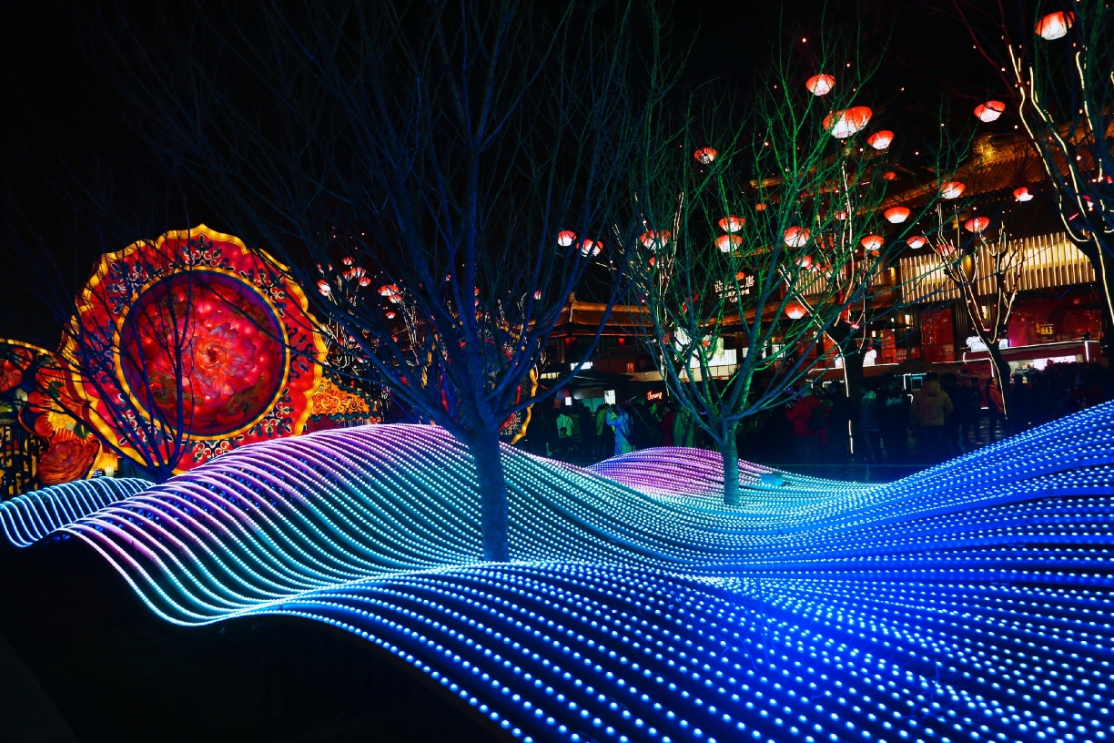 🌟整个街区南北长1500米,东西宽480米。以大雁塔为依托,贯穿了很多特色街区。春节期间,花灯点缀,灯火通明,勾勒出一副炫美的盛唐画卷。