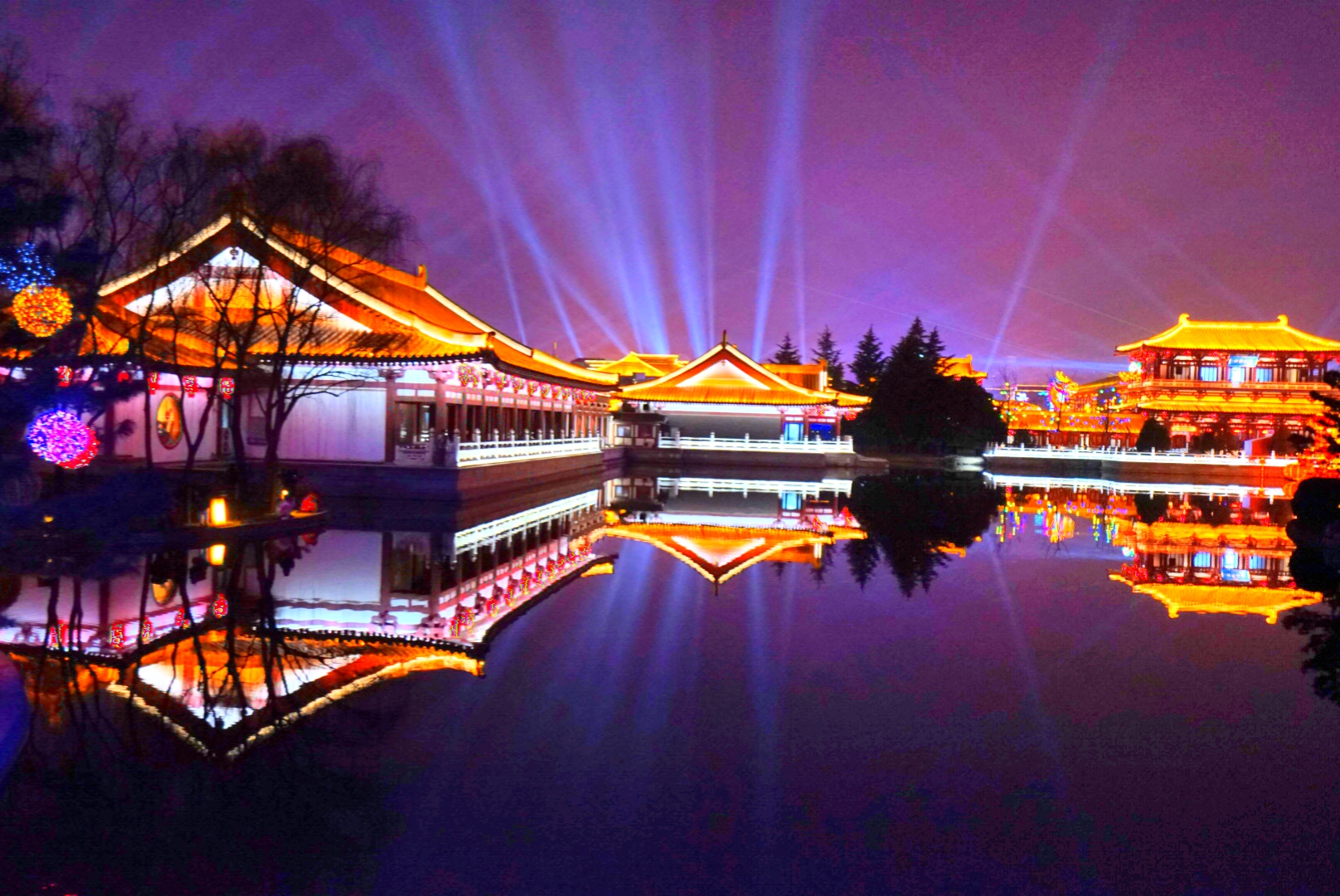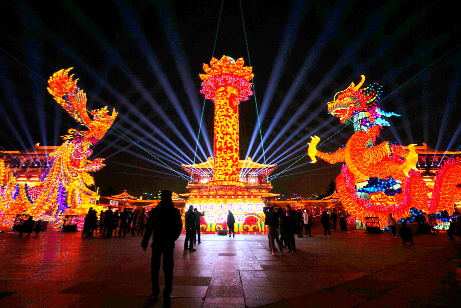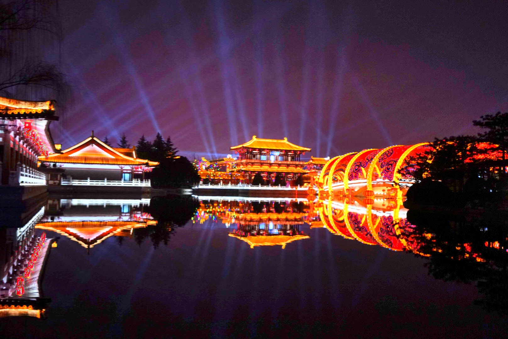 #冬天最适合拍照的旅行地#西安大唐芙蓉园以炫酷的灯光秀吸引世界各地的游人前来观看上元灯会,欣赏璀璨绚丽的夜景。大门外的龙凤呈祥高大壮观,呈现出繁荣盛世的祥和与安宁。