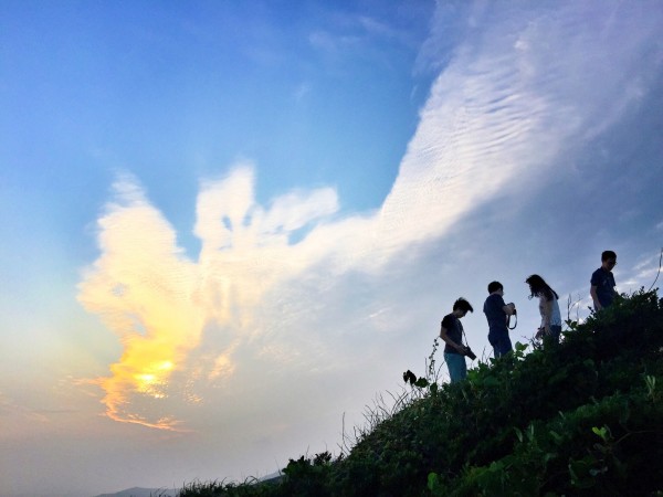 4:30到观日台的时候已经有蛮多人了,这么早到可能也是要站一个好位置看吧。等日出真的也是一件很浪漫的事情。海上初升的太阳,不像落日那般给人震撼的感觉,是另一种新生的感觉,太阳越来越高,天色越来越亮,仿佛眼前的一切都开始明朗……上升,上升,穿过云层,从暗红,变得炽热……虽然太阳从海平面上跳出来就只有很短几分钟,但是和大家一起看日出,在太阳终于露出脸来发出万丈光芒的那一瞬间,伴着不约而同的欢呼声,忍不住和身边的人一起发出“哇——”的感叹声时,觉得一切都是很值得的。