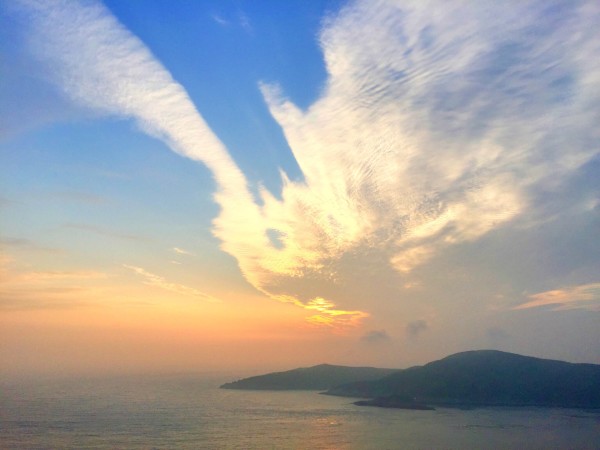 整个日出时间是凌晨5:03开始至5:11,然而等待是漫长的,日出却是短暂的,也许美好的事物就是如此吧,正所谓物以稀为贵。半江瑟瑟半江红,整个短短的过程可以用成语“拨云见日”来形容。听着海水拍打礁石,捕捉初夏的第一缕阳光,这样的体验人生难得几次有。看到这么完美的日出,不枉此行。