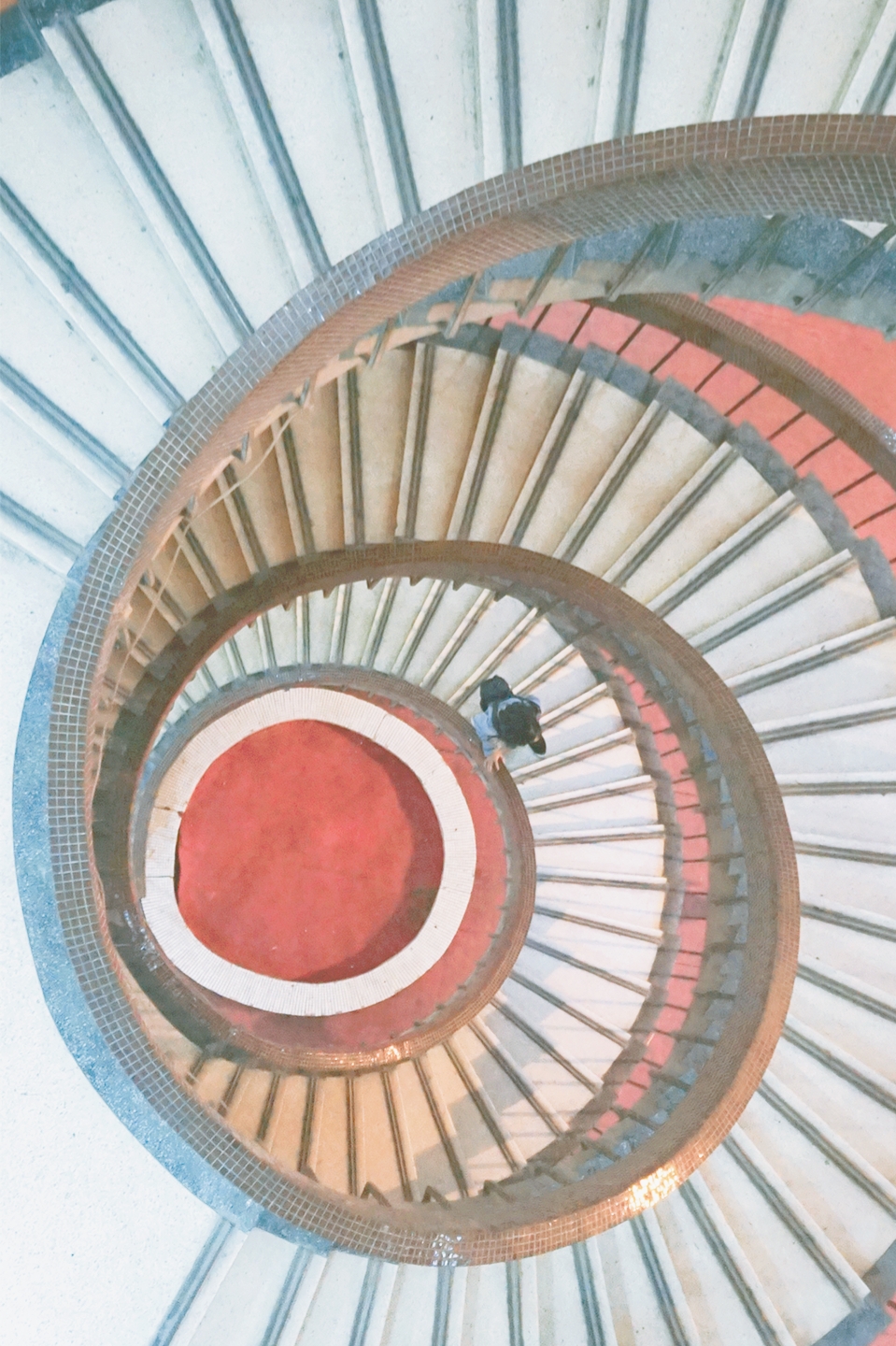 一进门,就被图书馆里面的旋转楼梯吸引住了,设计很有特色,远看像舞动的丝带,从地面往上看像一个漩涡……无论从哪个角度看都有新发现,总之,很文艺,很有年代感,太震撼了!