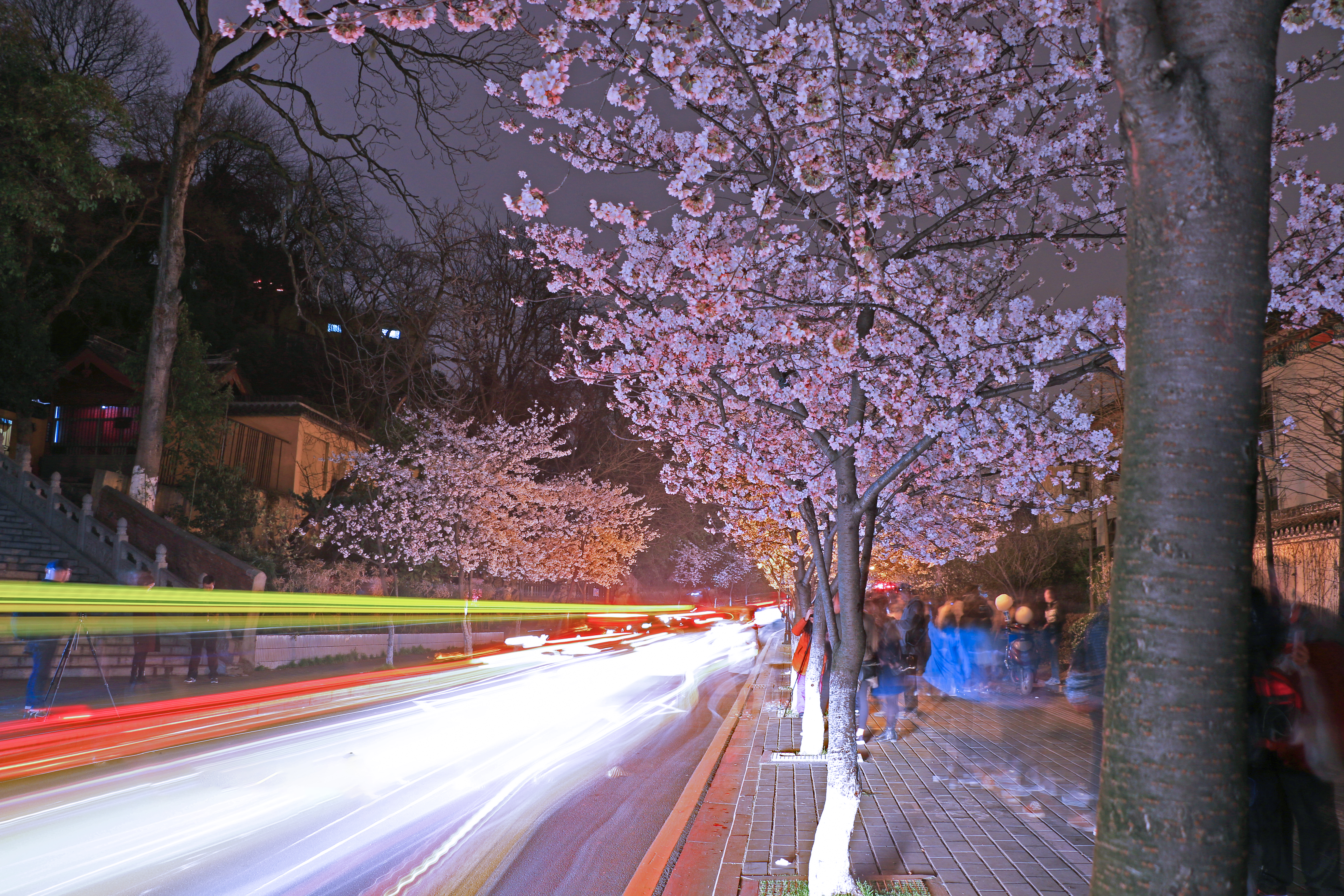 🌸✨鸡鸣寺路一带樱花盛开,路的东沿线是民国考试院旧址,颇具历史的沧桑,尽头又是明城墙与玄武湖的所在,开阔的玄武湖也是南京的著名景点,鸡鸣寺路樱花盛开之季,眼前的樱花如雪如云,蔚然一片,如至绯红青云里,久久让人不得坠地。这里的人流比较大,道路不是很宽敞,中间的马路又要让汽车通过,樱花盛开之季这里的交通也变的拥堵,道路本身不是很宽阔,加上来这里赏樱花的游客们,安全一定是要注意的。
