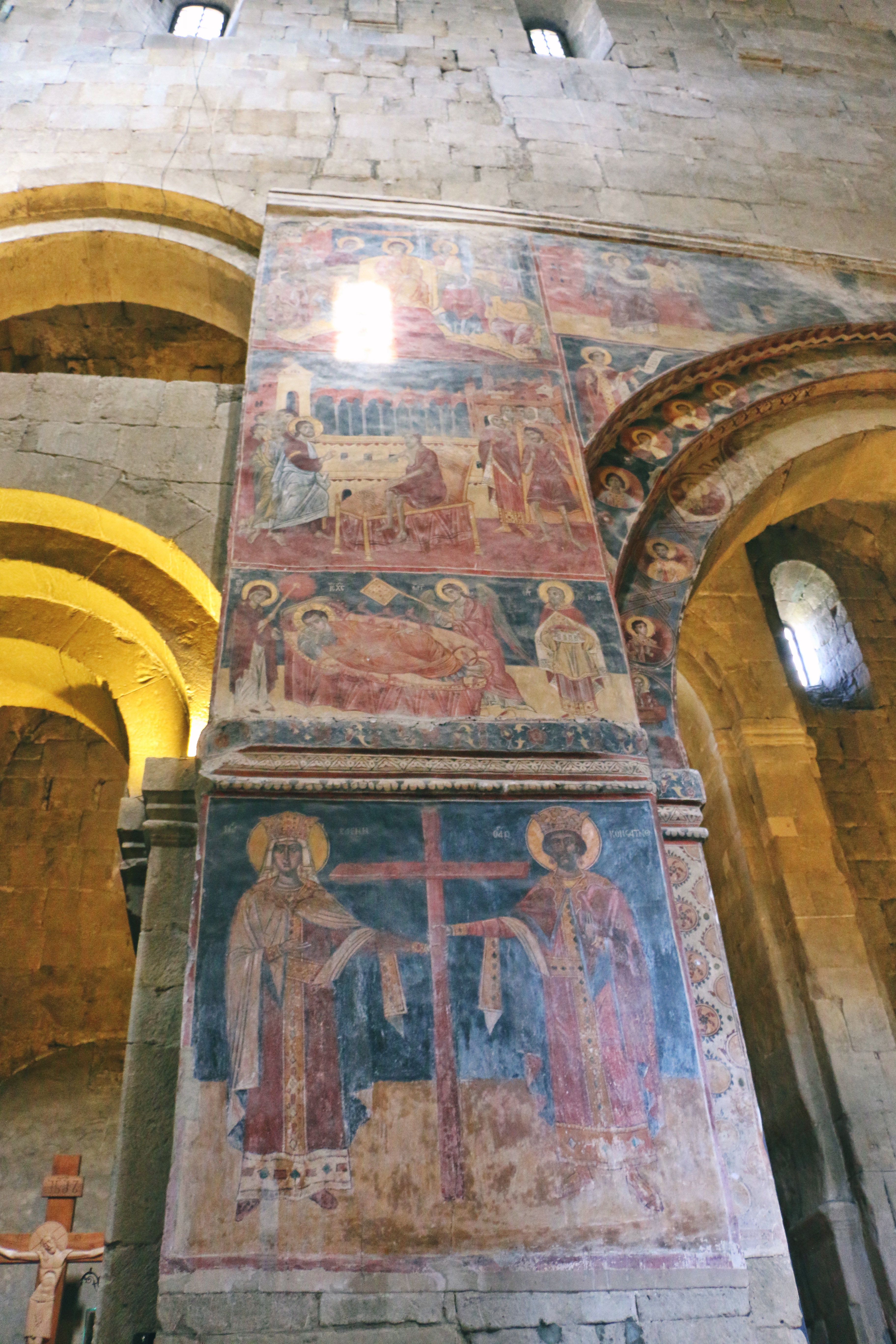 Mtskheta 姆兹赫塔全城被列为世界文化遗产,它距离首都第比利斯约20分钟车程,在Didube可以买到汽车票,1 Lari。姆兹赫塔的生命支柱主教座堂最为壮观,据说这里还有耶稣当年的血斗篷,这里还有一个历史故事,因生命支柱大教堂因过于壮丽,国王就将教堂的设计师断臂,因为国王不允许他再设计出比生命支柱大教堂更为雄伟的教堂。#樱为索以#