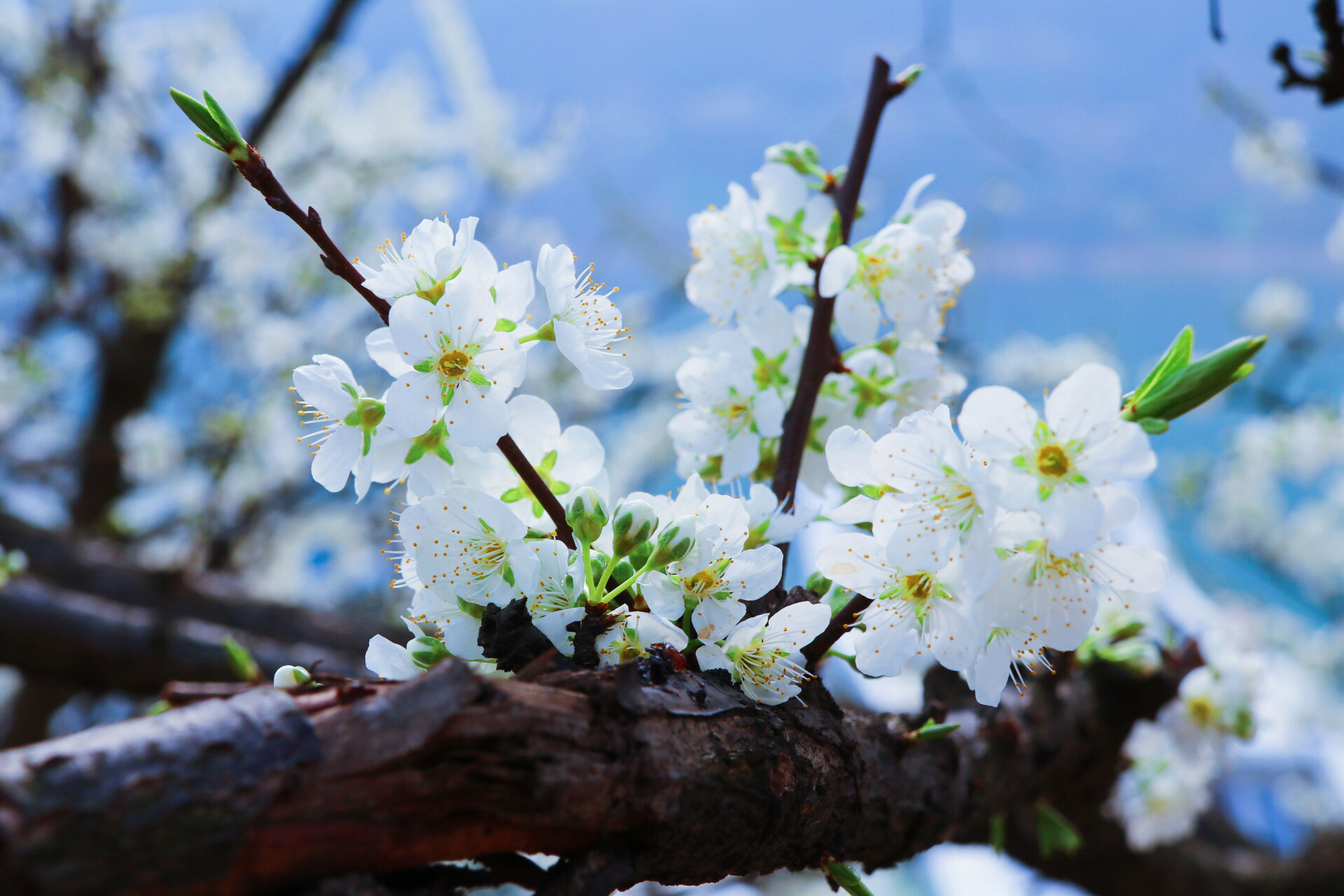 呼如一夜春风来,千树万树梨花开,延绵十里铺成雪