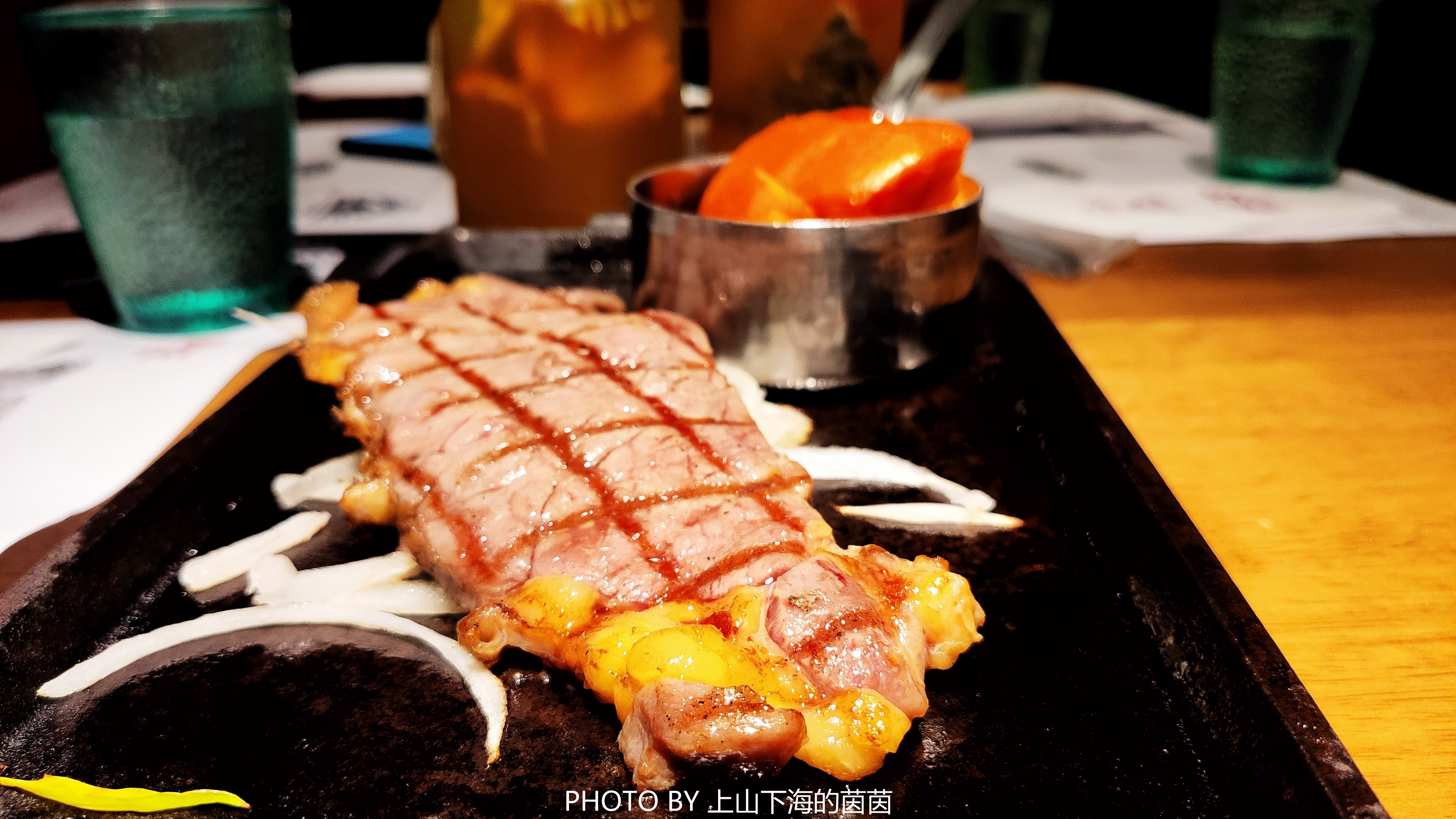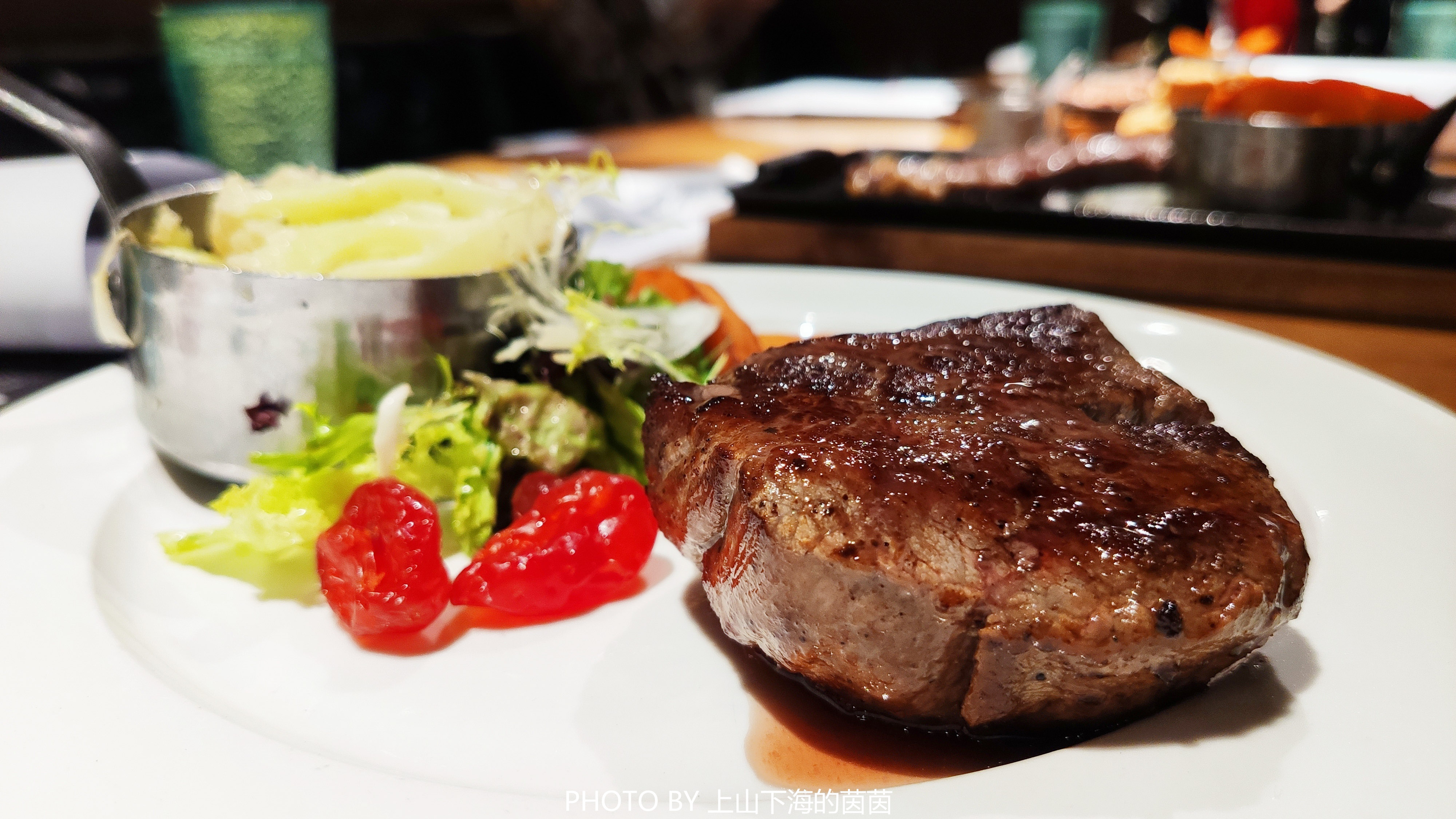 除了澳洲草饲外,在赛牛·炙烧牛排也能吃到加拿大谷饲AAA。谷饲牛的肉质细嫩、多汁、浓郁、醇厚,一上桌就让人口水直流,空气中都弥漫着牛排的香气。