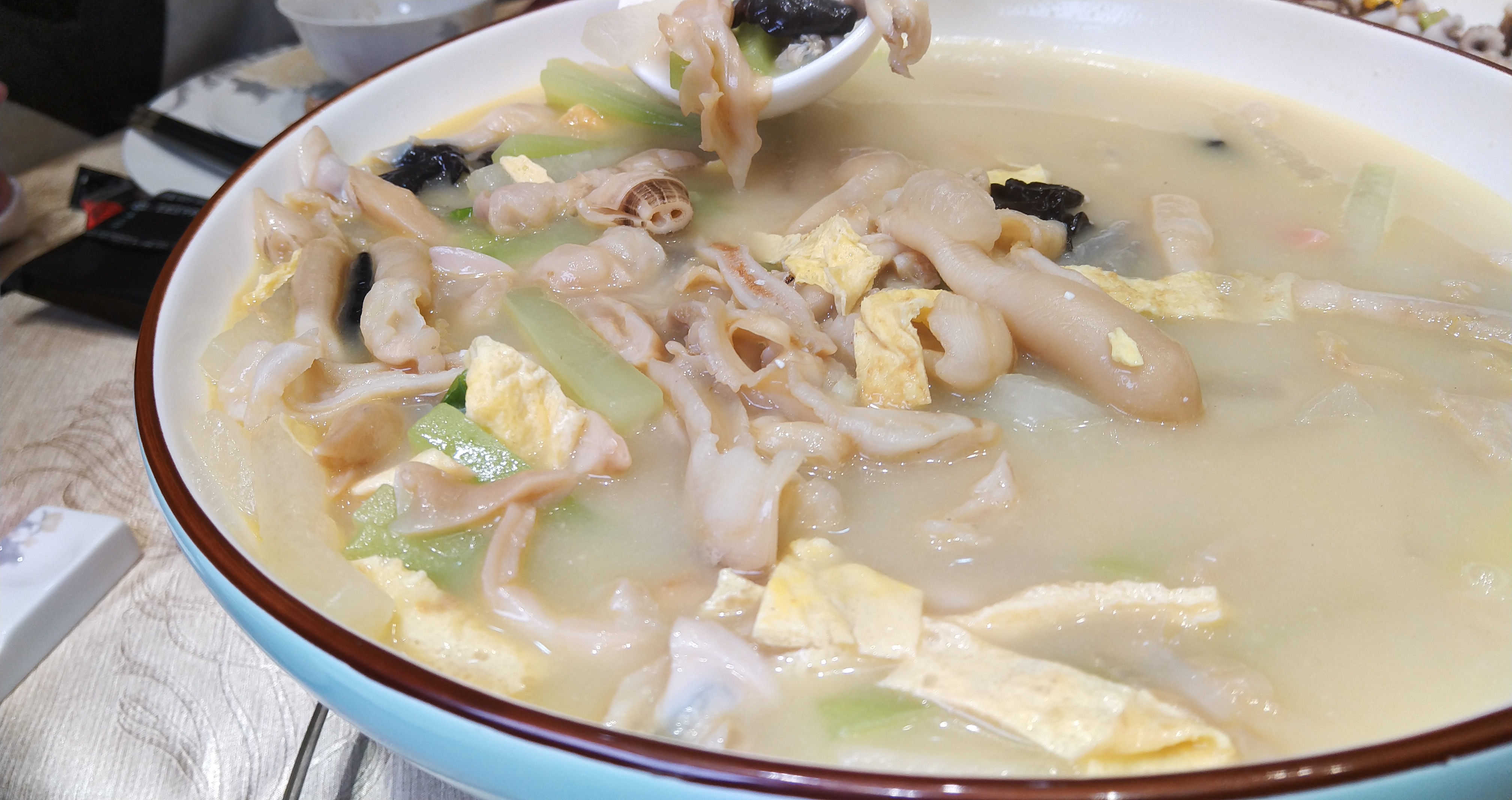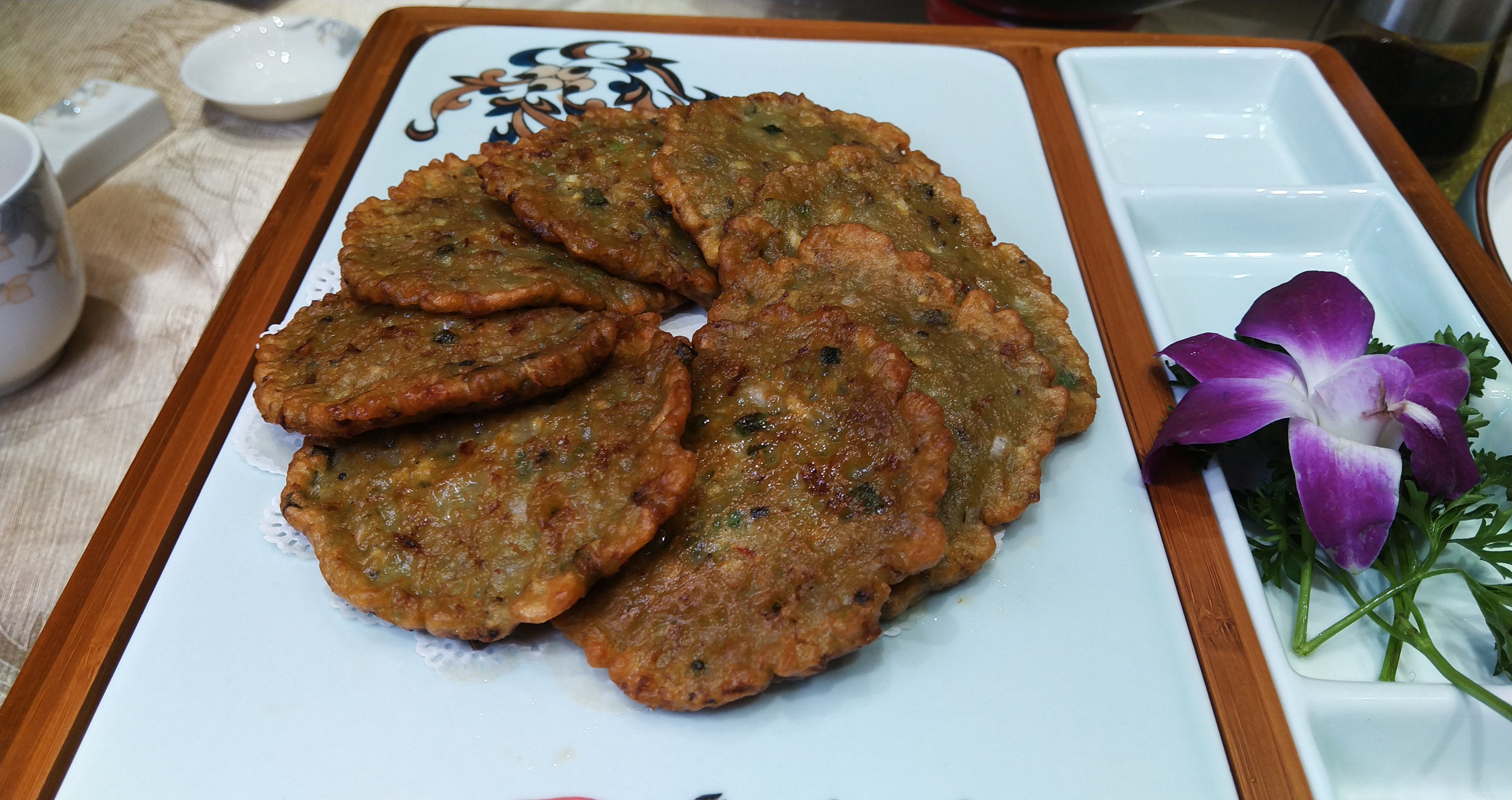 文蛤饼其实有点像韩国的海鲜饼,质感上又接近土豆饼,黏黏糯糯的,文蛤肉充盈紧实,一口咬下去会爆汁,很令人满足!南通的黄鱼带鱼品质,也绝不输东海产区的舟山宁波,一碗用高汤炖煮出来的竹蛏王,鲜美呐!