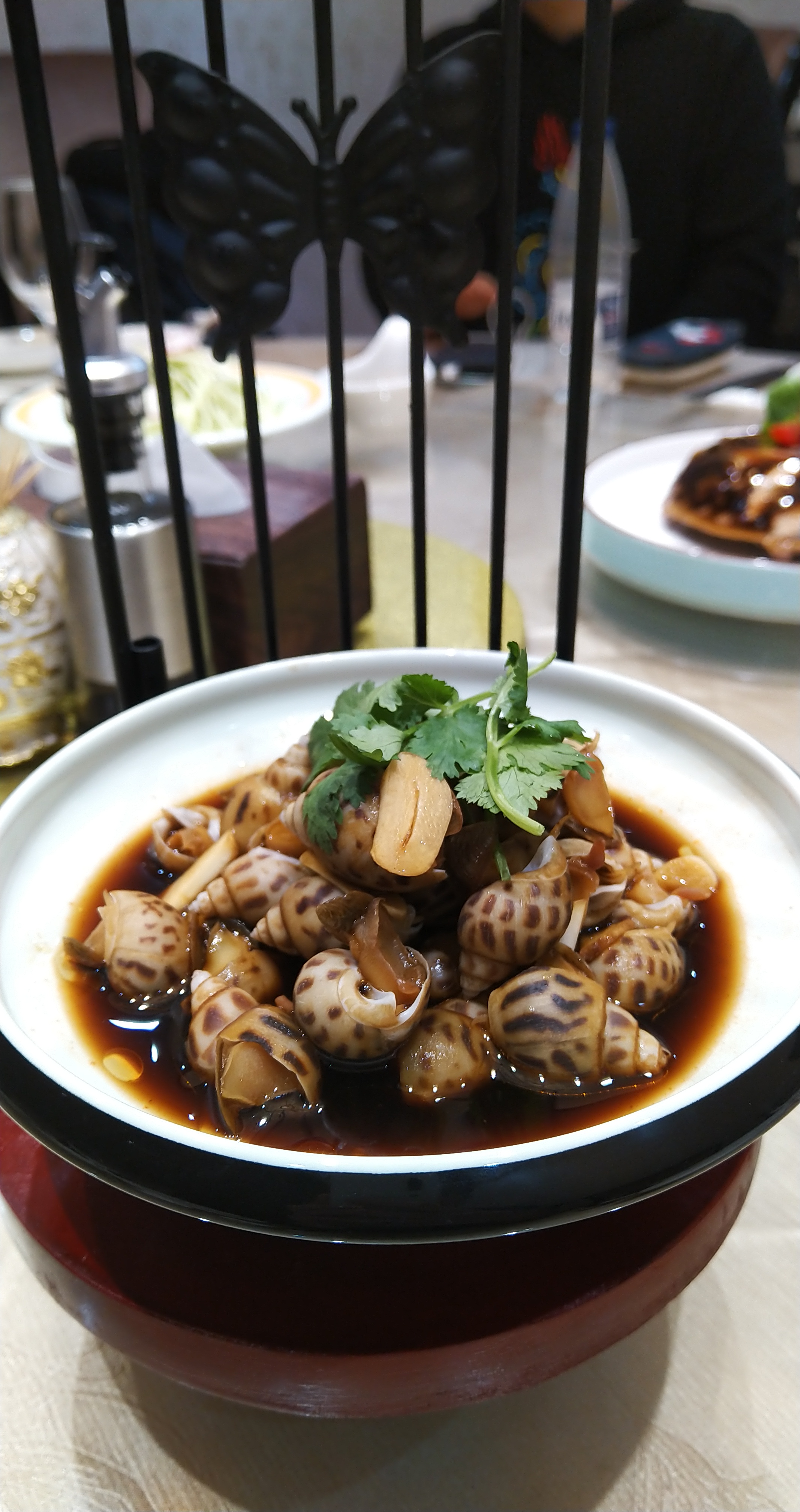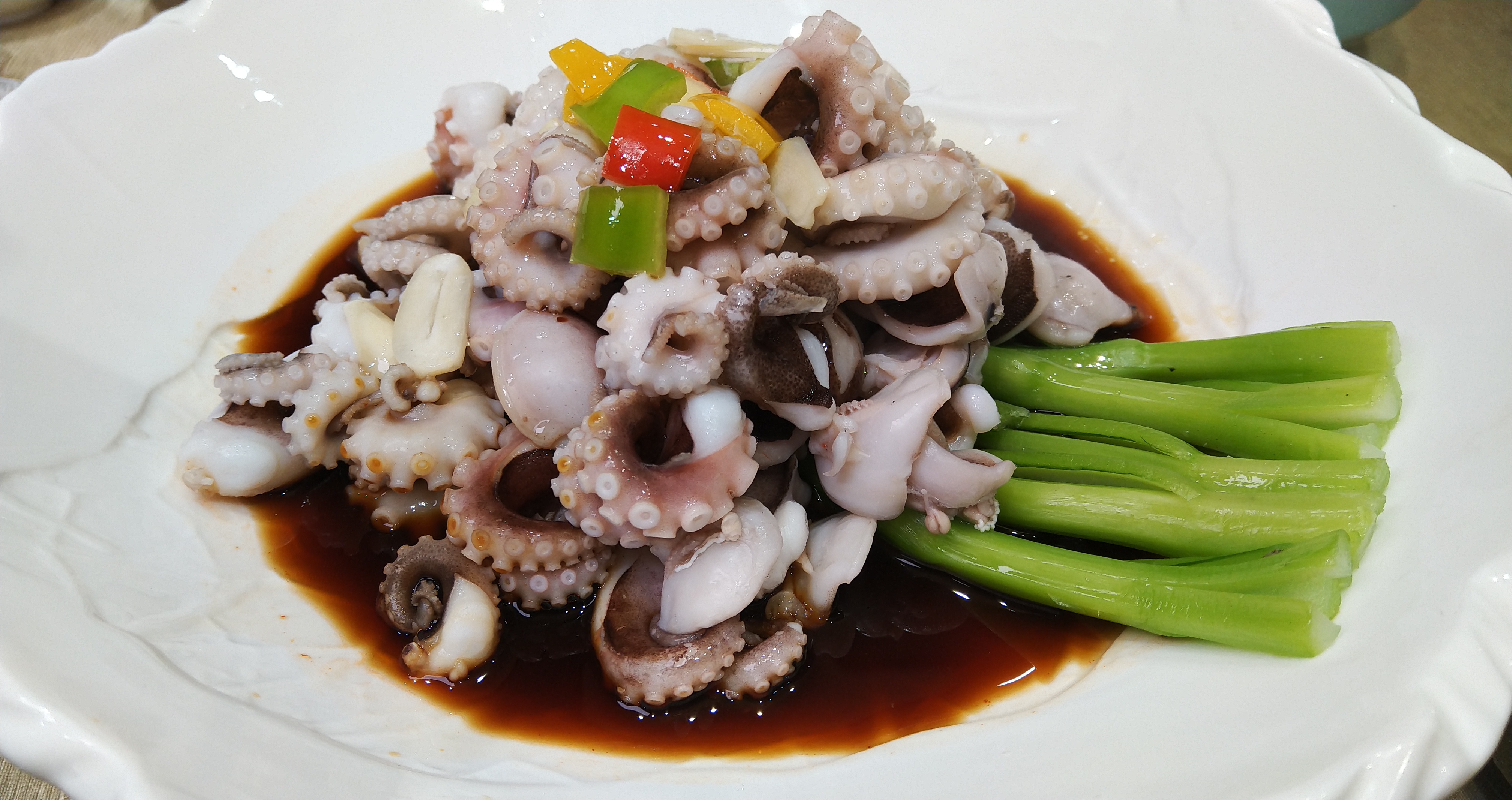这里的文蛤、花蛤,做法多样,总体口感偏清淡。唯独把泥螺做成了辣味,倒也是惊喜,以前是吃惯了酒味偏重的甜口罐装泥螺,毕竟是老家特产。白灼章鱼,平淡出彩还带着淡淡的芥末香,简单美味。皮皮虾是带膏黄的,肉也很紧实,正当季!