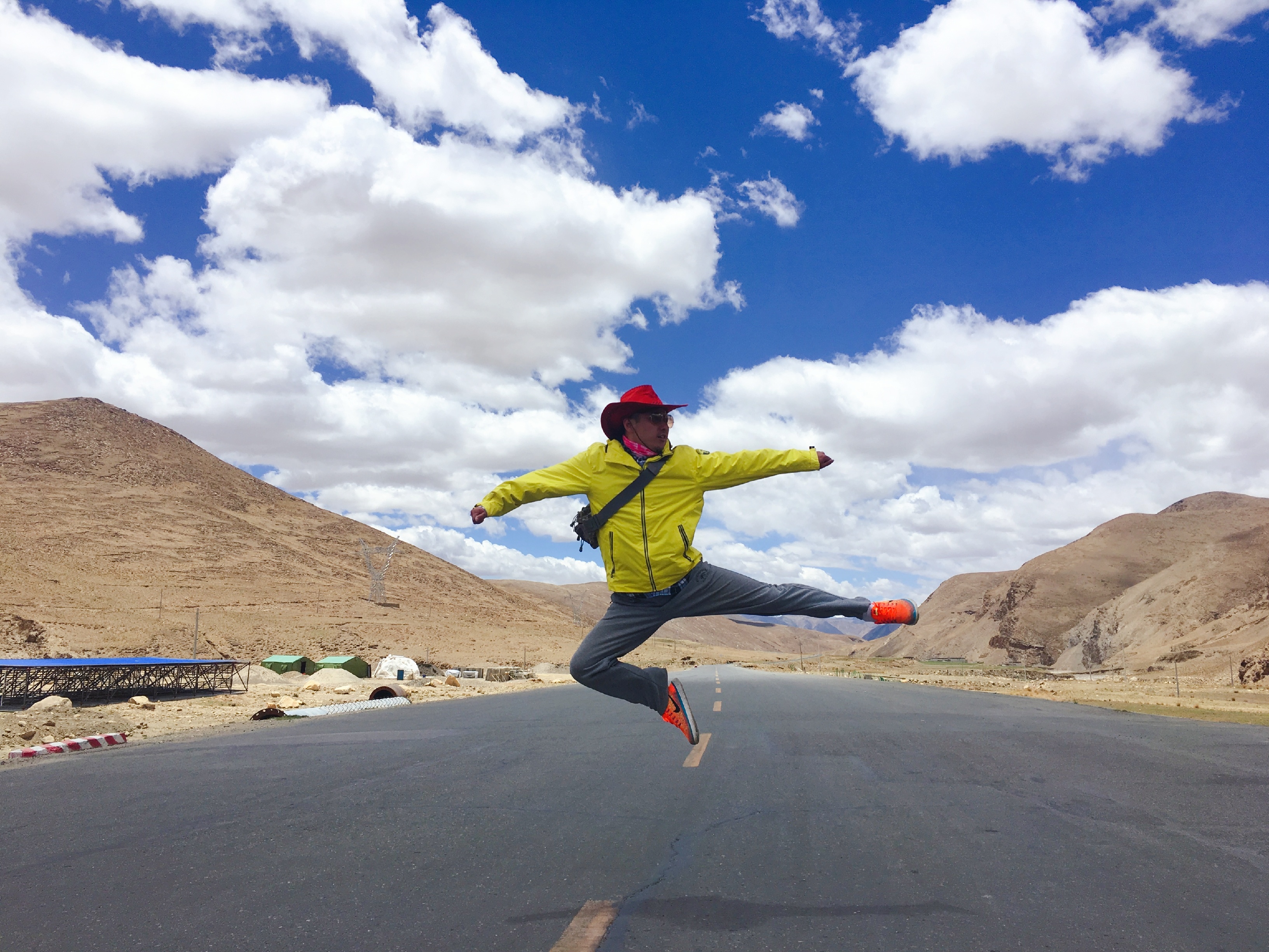 #旅途中难忘的人#正式进入珠穆朗玛国家公园。。本想拍两个藏族小朋友,却意外看到球星在摆造型,咔咔两张~~你以为我是在太空漫步?错了,其实是小伙伴没把我跳的姿势拍好~~~这两跳,彻底让我晚上到达珠峰时候就蔫了。