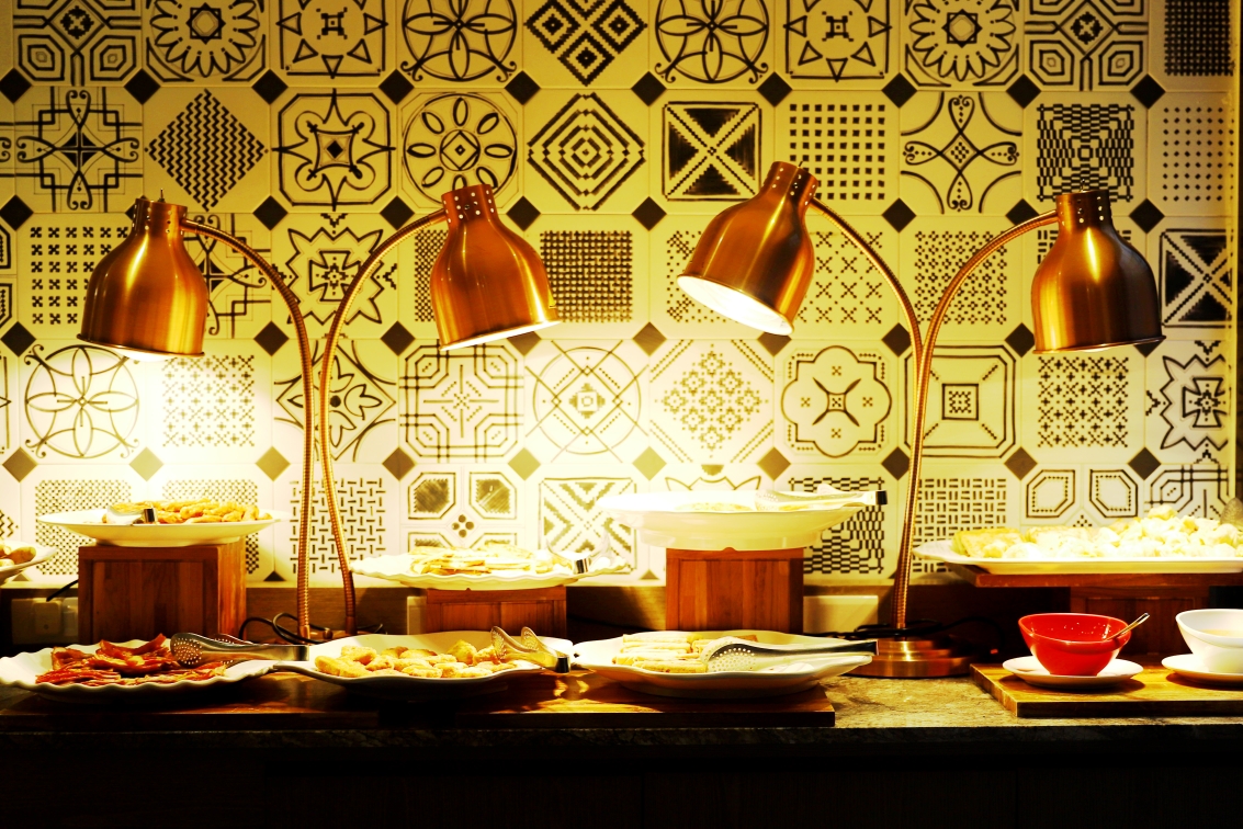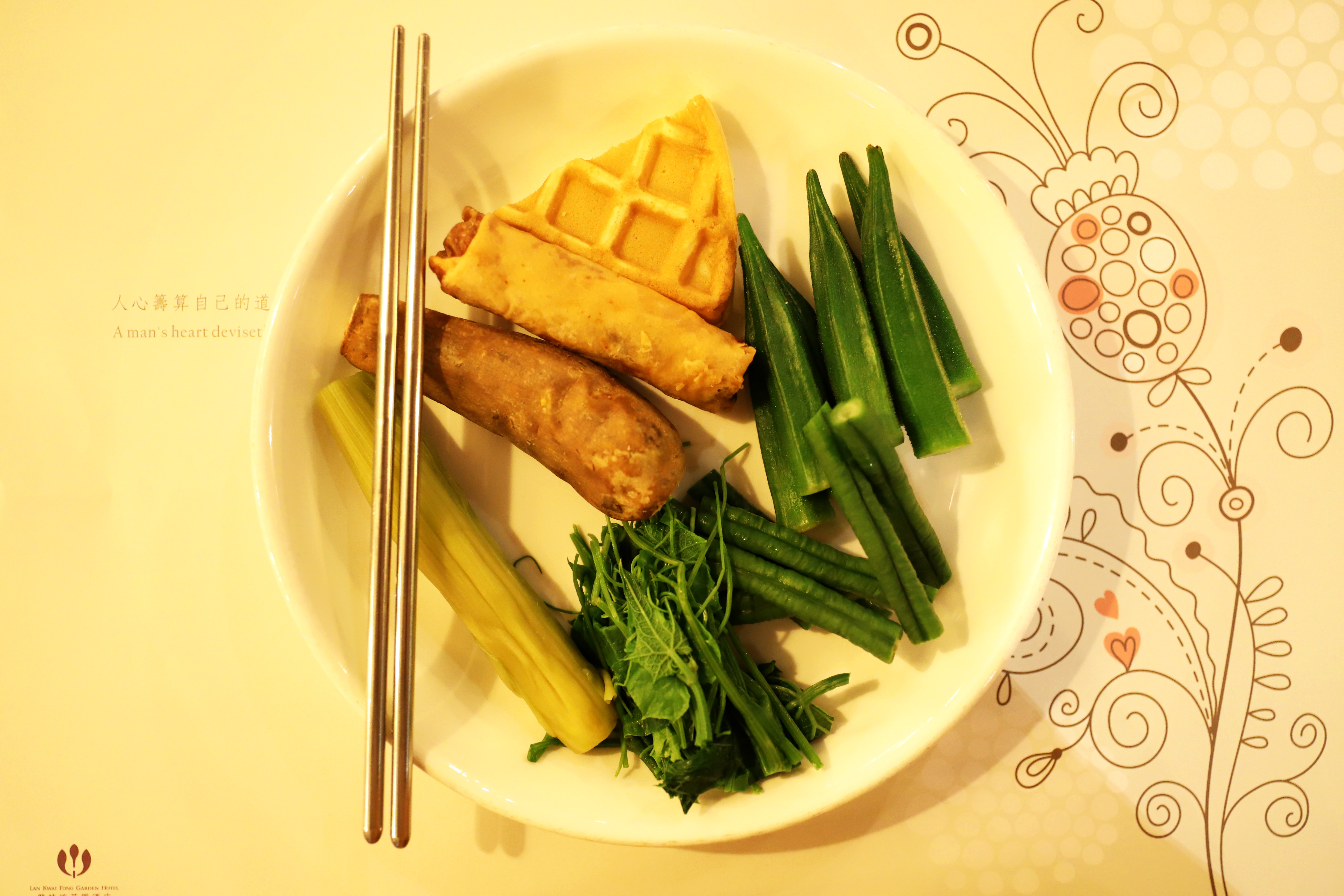 早餐是在大厅最里面向右转的拐角处取用,虽然地方不大,但是菜品非常的丰盛,中餐西餐都有,还有我喜欢吃的纯绿色蔬菜,豆角和秋葵,鲜嫩爽滑可口,吃完一盘,又去整了一盘,我要多吃绿色蔬菜,补充VC,嘻嘻~