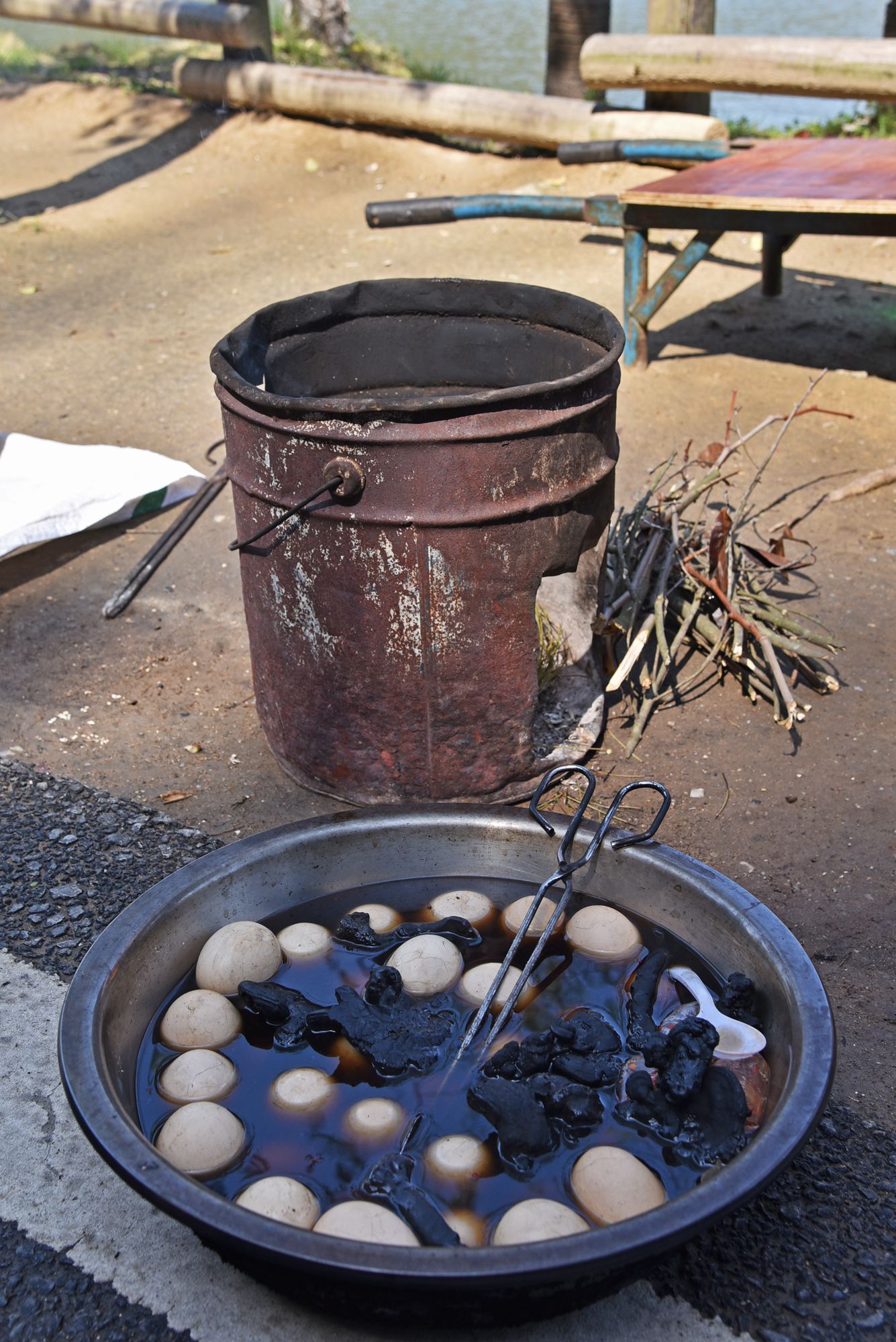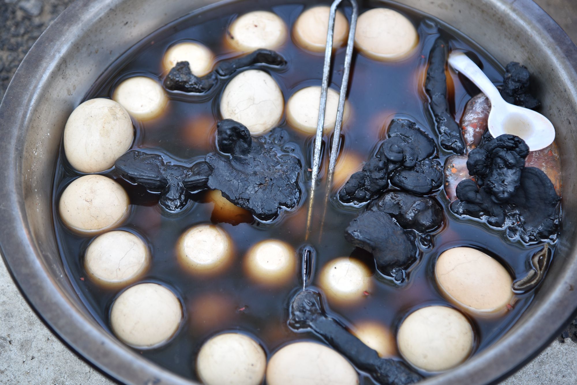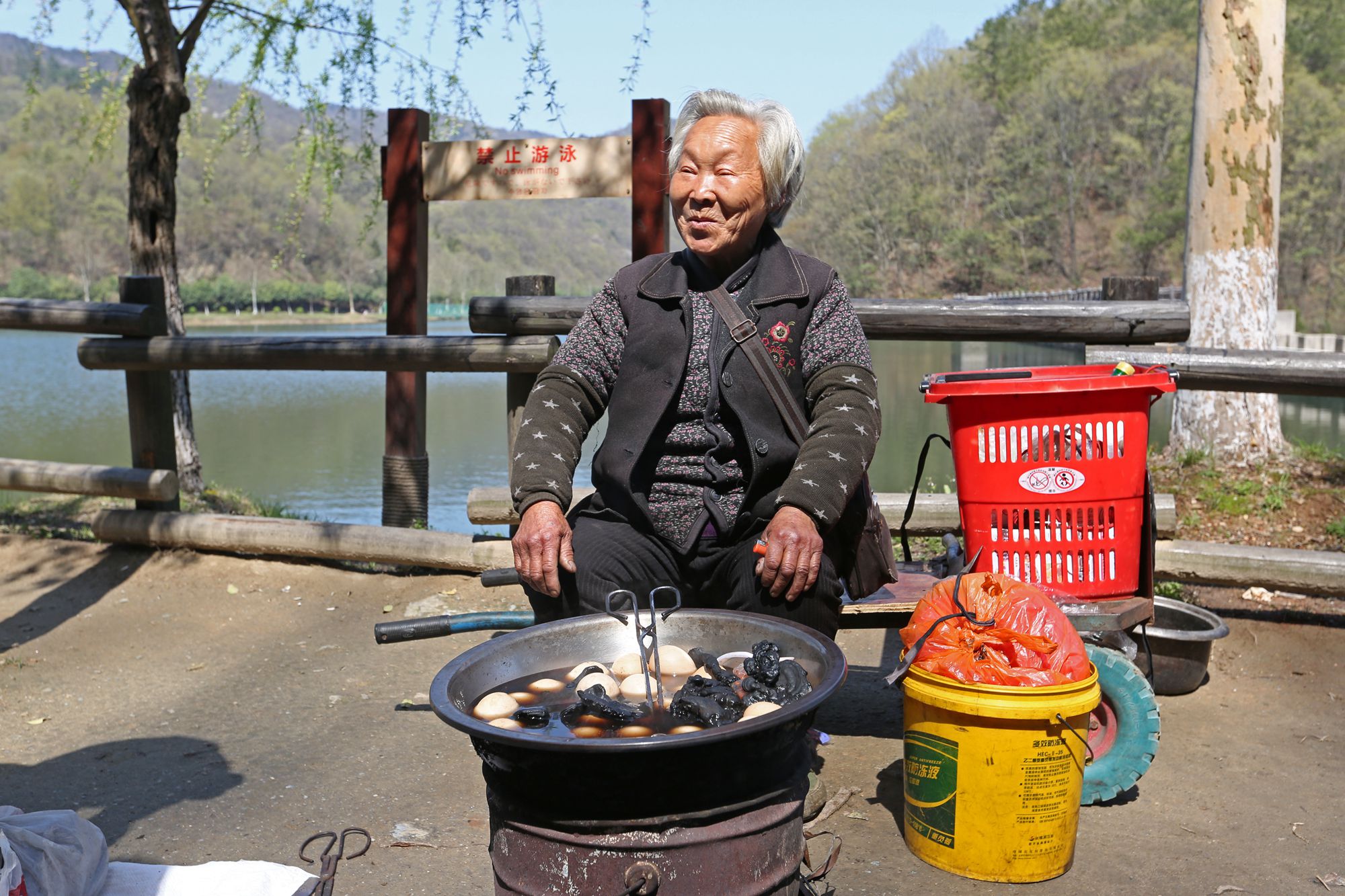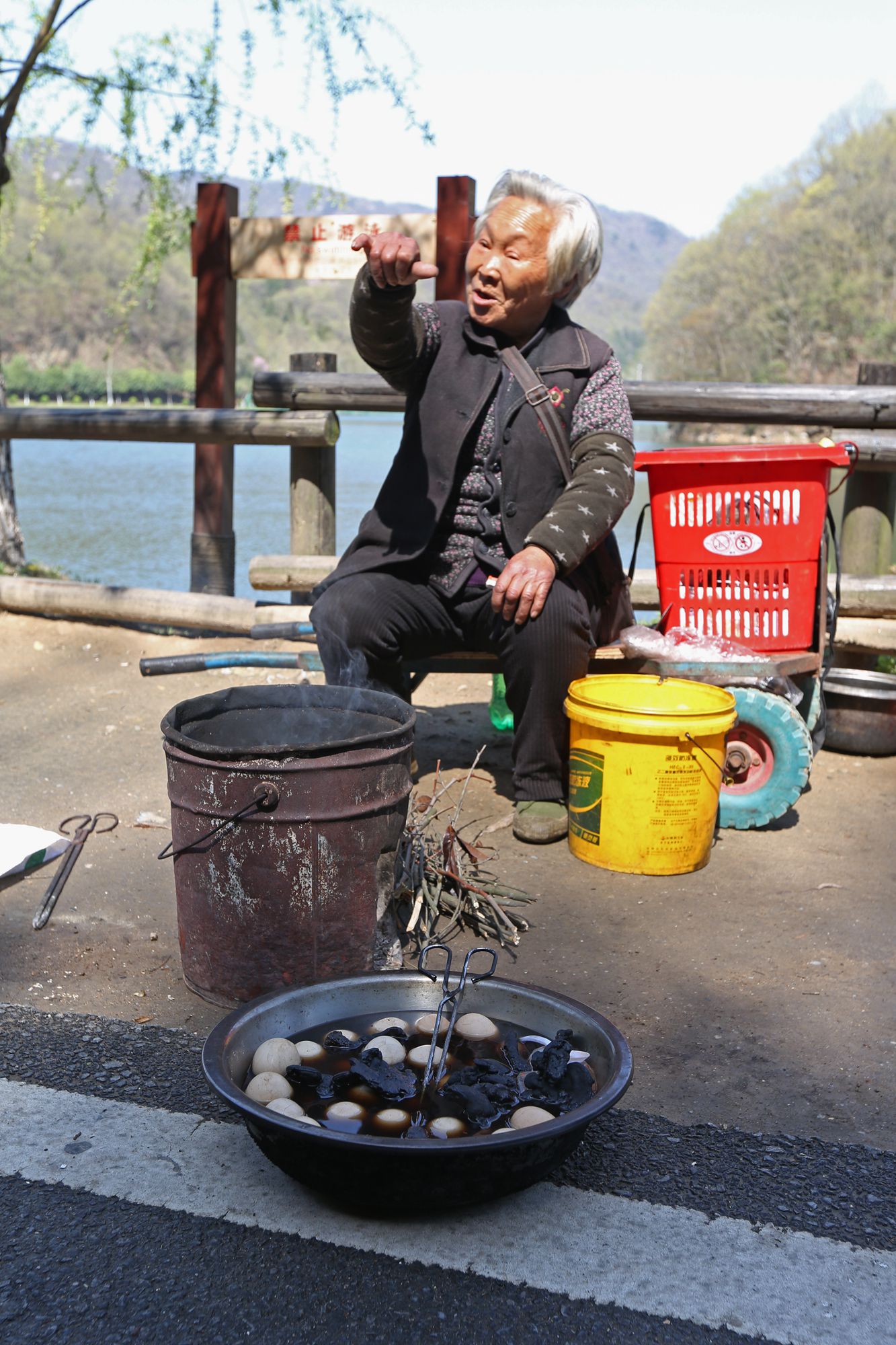 在武汉木兰天池水上探险项目附近,有一位卖煮蛋的老奶奶。刚路过时以为卖的是茶蛋,走近仔细一看,锅里黑乎乎的不是茶,而是灵芝。灵芝本是稀罕物,是一种名贵的中药材,具有补气安神、止咳平喘、强心保肝、抗炎抗癌、增强免疫、延缓衰老的功效。老奶奶告诉我们:灵芝采自天池附近的山林,鸡蛋也是当地的,都是纯天然的药材和食品,虽然在景区里,但灵芝蛋并没有贵的离谱,十块钱能买六个。