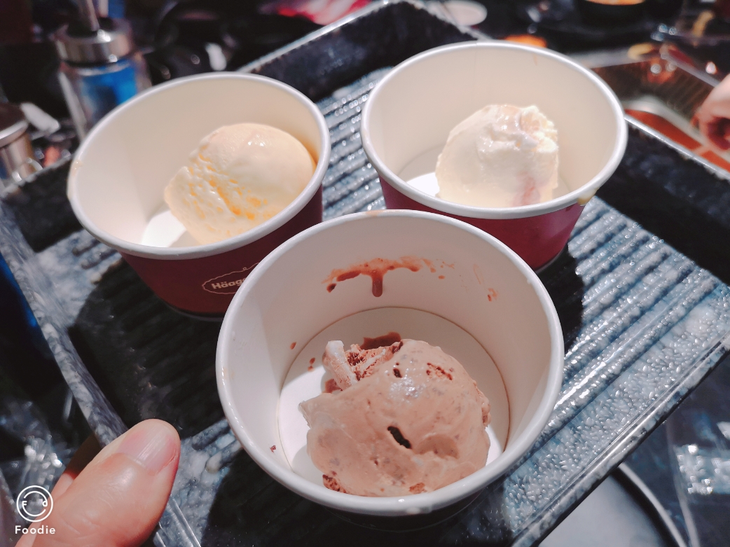【用餐】既可以烤肉又可以涮肉是玄牧自助肉类料理的一大特色,餐桌居中的长方形烤涮区兼顾了每个人的用餐半径,鸳鸯的火锅锅底选了酸菜锅和辣锅,不仅锅底品质好料也足。取餐的话处肉食以外的品类可以直接在自助区选择,点肉的话提供菜单,品类丰富到眼花。这里强烈推荐他家的精品肉系列,需要每人额外加价50元,像M7澳洲雪花牛肉、安格斯雪花牛小排、阿根廷天使红虾等等,品质都是上佳的,真的物超所值,而且还提供哈根达斯冰淇淋。