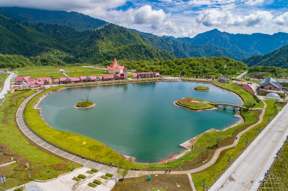 蓝天、绿地、高山、白云,再加上一片欧式建筑,这么美丽的景色完全可以说“假装”去了国外,这就是有东方阿尔卑斯之称的西岭雪山。夏季的西岭雪山当然是没有雪的,但却又不一样的美丽的景色。景区最美的景色就是位于滑雪场的映雪湖附近的景色。因为海拔的原因,这里天气经常多变,我刚来的前一天还是云海大雨,第二天天公作美云海就散了,露出了远方的高山,景区精心修建的映雪湖和各种欧式建筑在眼光的照耀下也更美丽。如今自驾西岭雪山已经成了很多成都游客的首选,除了大家都爱玩的滑雪场之外,山上的日月坪、阴阳界等景区也值得一转。西岭雪山一日游有些紧张,推荐二日游,第一天可以座索道到达滑雪场,住在映雪湖附近的酒店中,下午赏赏5月盛开的报春花,吹吹风也是不错的选择。在映雪湖西侧还有第二个索道可以继续登顶,到达日月坪以后可以看日出以及继续深入探寻神秘的阴阳界景点。在景区的一角,一排欧式的小房子,配上蓝天白云,很有异域的景色。除了美景之外,由于西岭雪山与西方的阿尔卑斯山基本位于同一纬度,其学质和积雪期都有相似之处,因为被誉为“东方的阿尔卑斯”,除了冬季的雪景外,这里一年四季都各有景色。夏天的西岭雪山,有报春花,还有杜鹃花,夏季来这里旅行是休闲放松的最好选择,在西岭雪山,你可以尽情的欣赏自然的美丽景色。#带你去旅行#