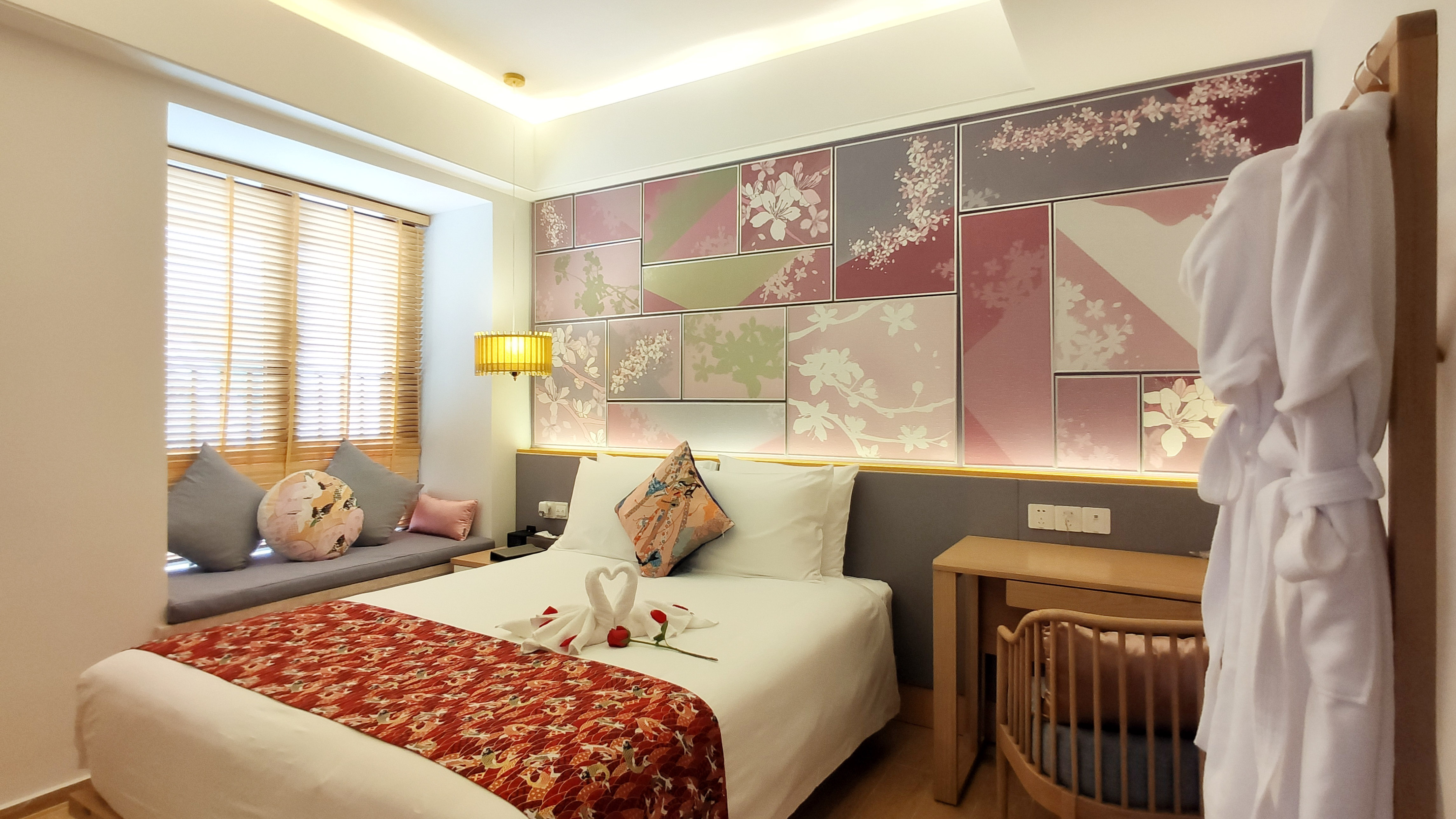 🌸【浪漫樱花朵朵】樱花是一种时令性极强的花卉,但漫天樱花的感觉又极其浪漫。所以方圆·云雅酒店将樱花元素和日式木屋元素完美结合,为住客营造了樱花朵朵、浪漫满屋的浪漫恬静的氛围。