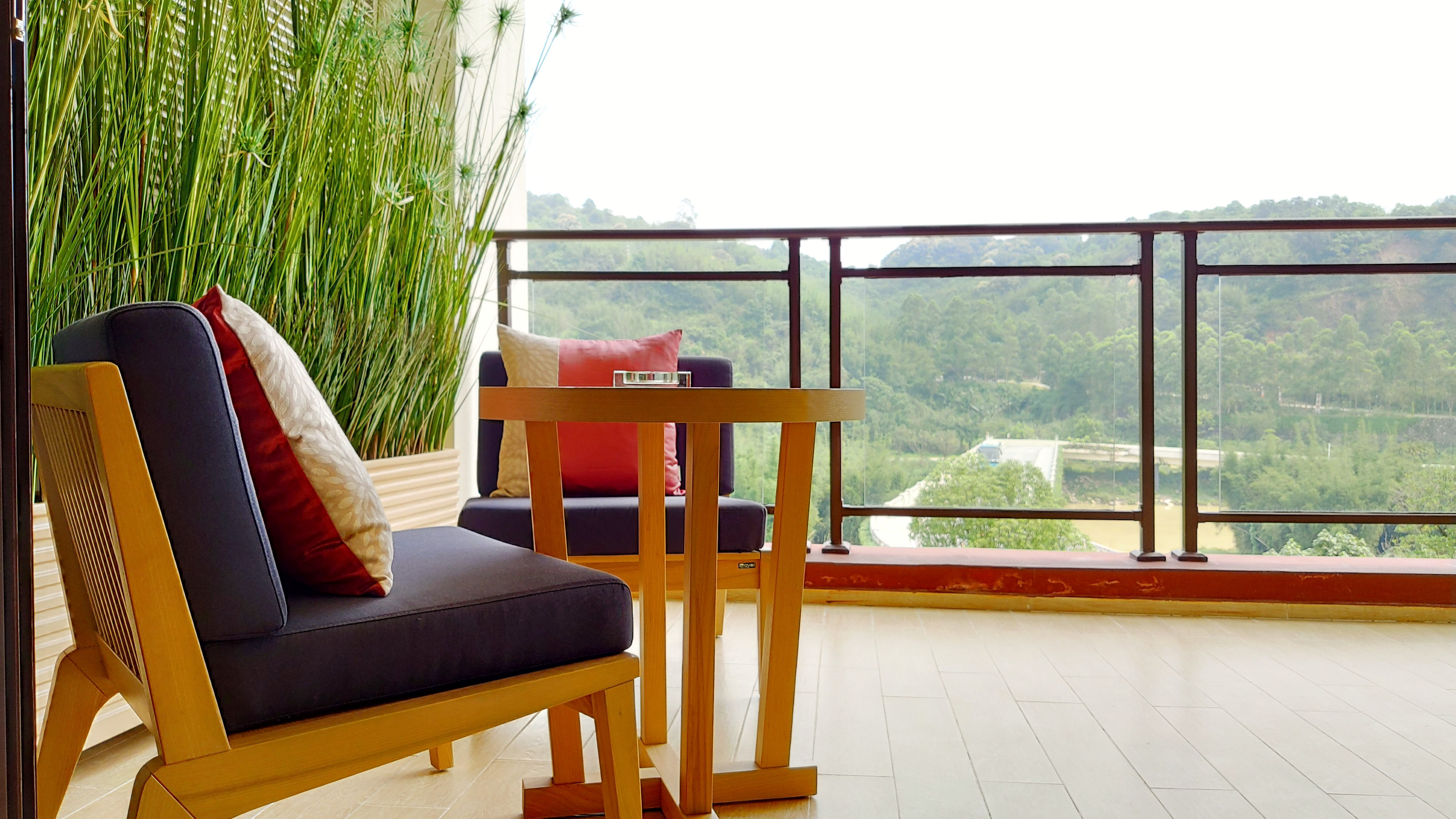 🖼【生态景观阳台】生态观景阳台视野开阔,透过超宽的落地窗,不仅可以远眺流溪河的波光粼粼、亦可俯瞰月岛内的绿意盎然。自然气息扑面而来,绝对的惬意!备有藤椅与小餐桌,让人跷着脚就能悠然享受惬意的私密时光。