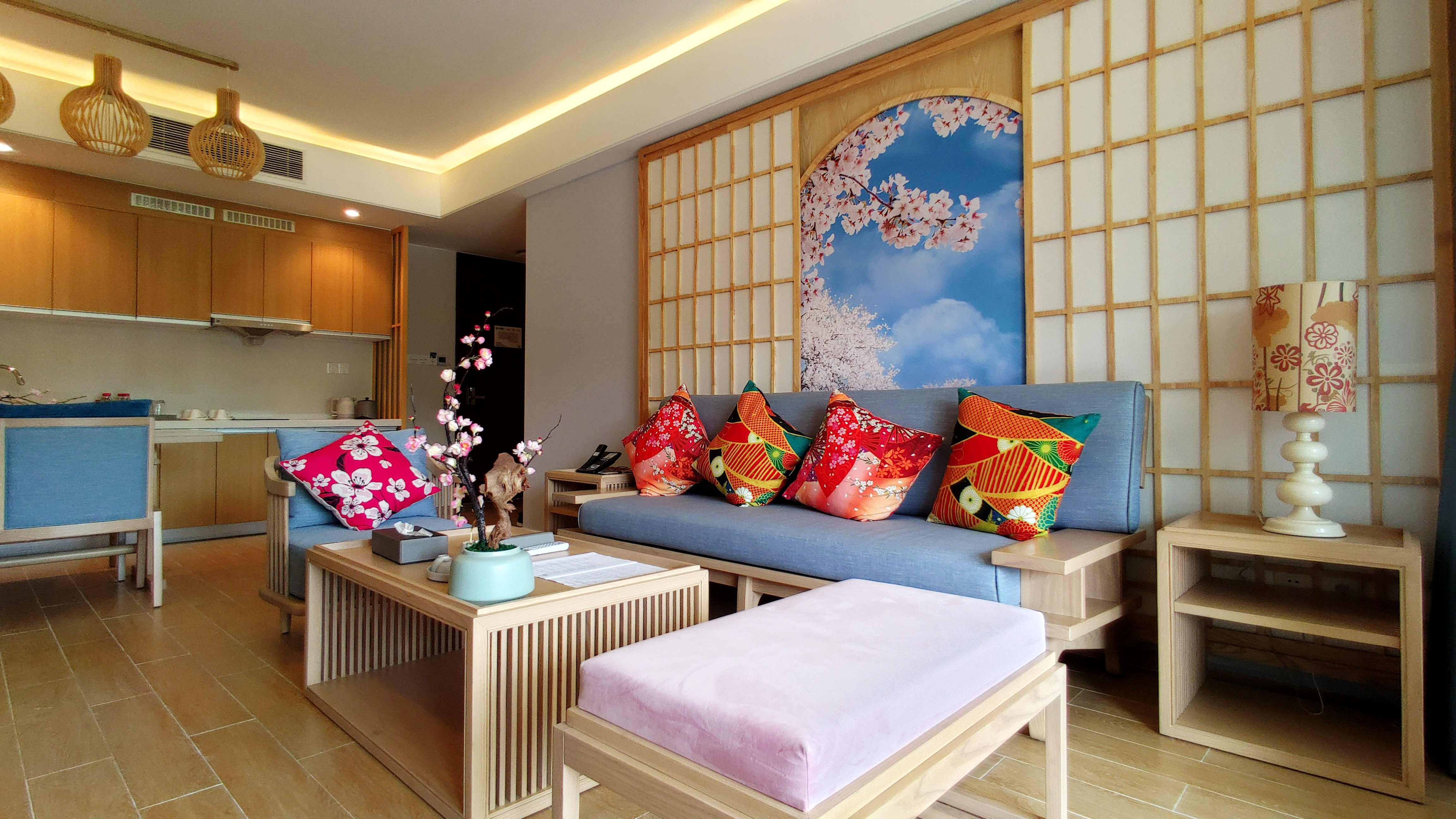 👍【轻奢樱花套房】这次入住的是樱花套房,打开房门瞬间感受到浓浓的日式度假屋气息扑面而来。内装均以白色与原木色的搭配为主调,大面积的原木与橡木地板渲染出干净、纯粹的氛围。套房内是2厅(餐厅和客厅)2卧(各带独立洗手间)1阳台的安排,走的是不张扬的简约奢华路线,每一个细节的背后都有着最诚恳的用心。