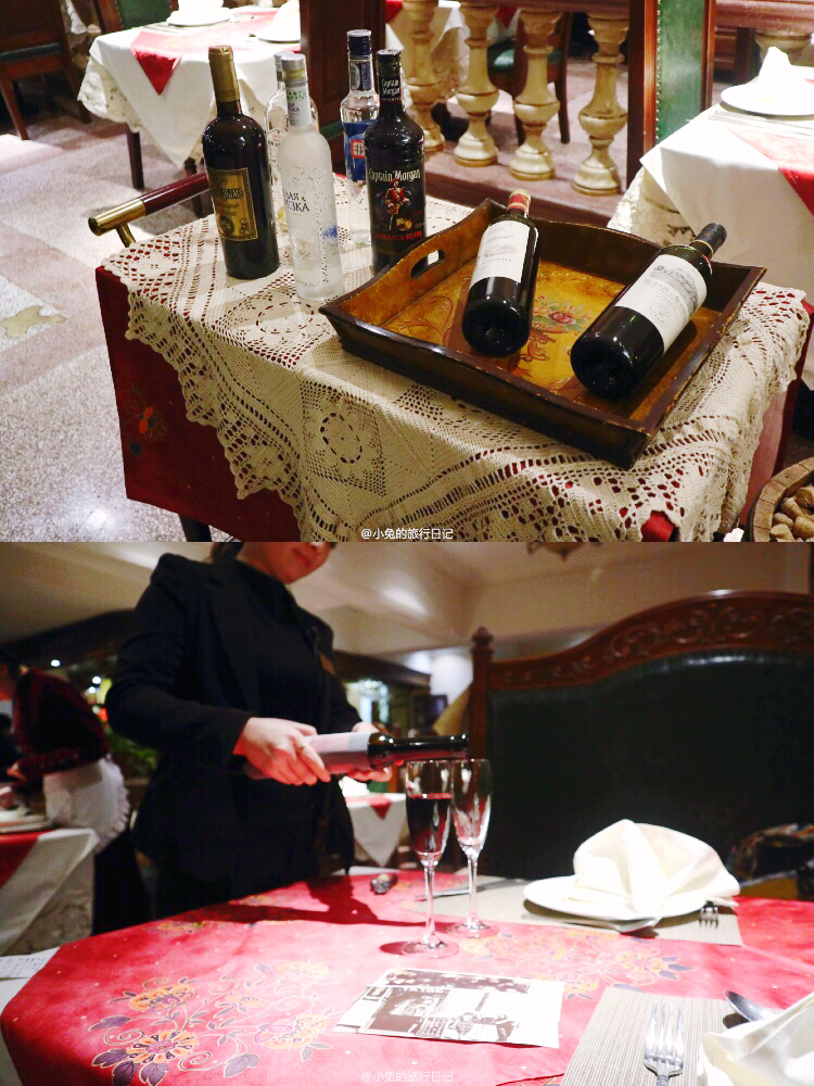 🍷这家餐厅位于地下,很有神秘感,推开门走进去,一眼就看到了穿着酒红色丝绒长裙的服务生们,很漂亮。餐厅的装修风格很复古,让人有一种仿佛在国外用餐的感觉。这里有吧台,可以点鸡尾酒品尝。