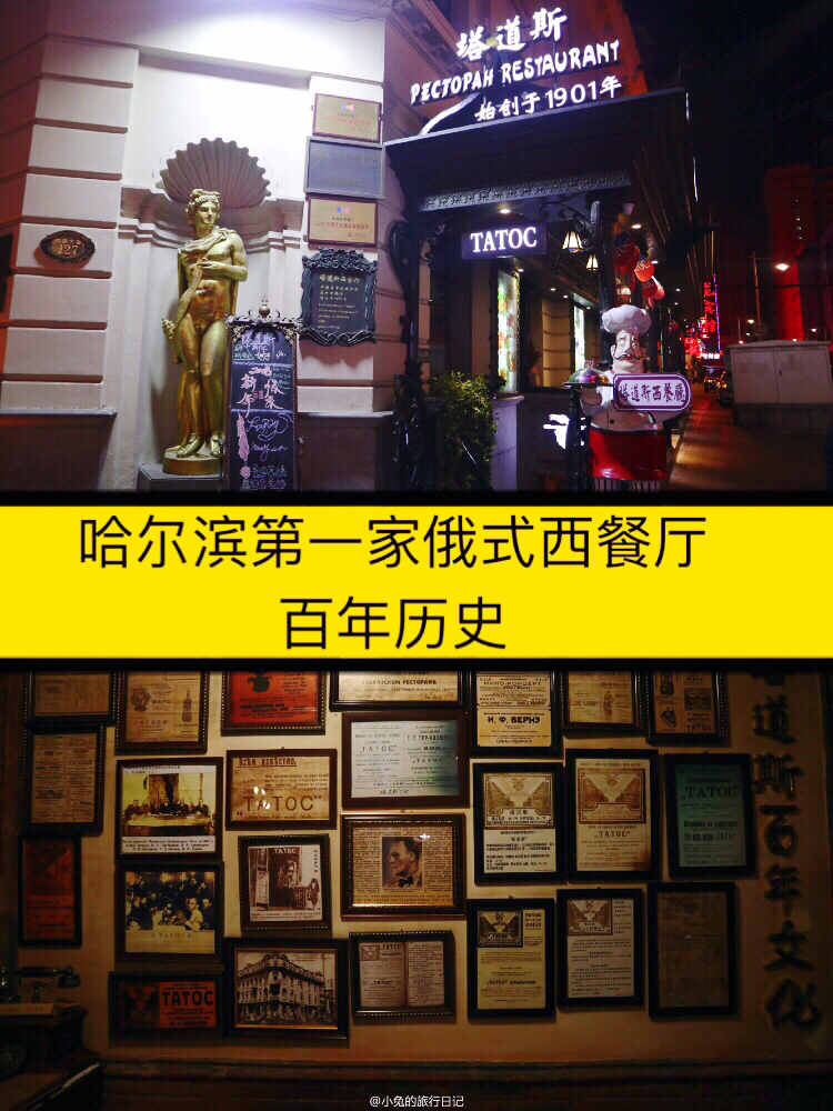 🍷塔道斯西餐厅位于哈尔滨中央大街, 是哈尔滨第一家俄式西餐厅,也是中国最早的高加索风味餐厅,创始于1901年。来哈尔滨旅行,不仅要尝尝东北菜,还要品尝精致的俄餐哦。