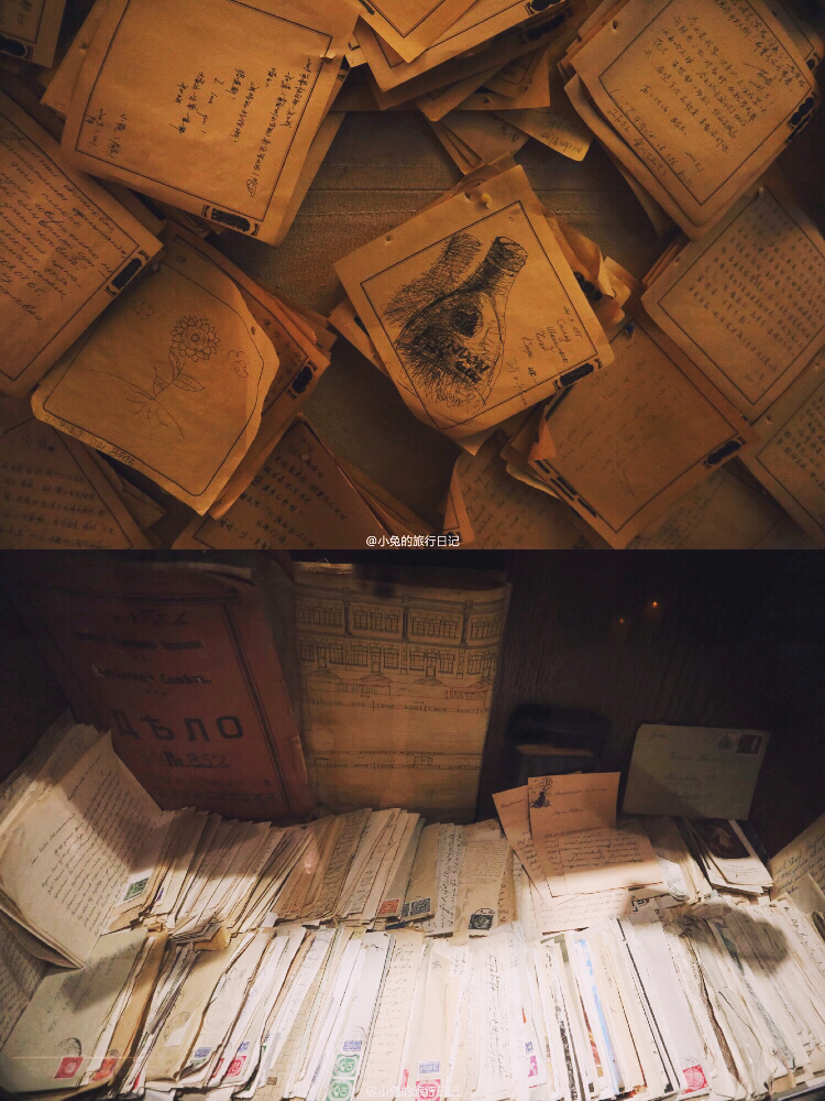 🍷餐厅送了我们两张明信片,用完餐后,我在餐厅里四处参观,每一处的细节都很用心,似乎每一件物品都有它的故事。餐厅门口有一面墙,挂满了餐厅这些年的发展历程,还有很多明信片和游客留下的便贴。