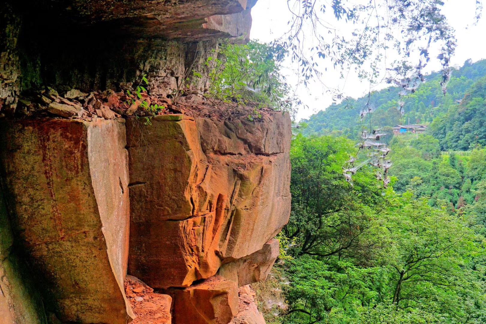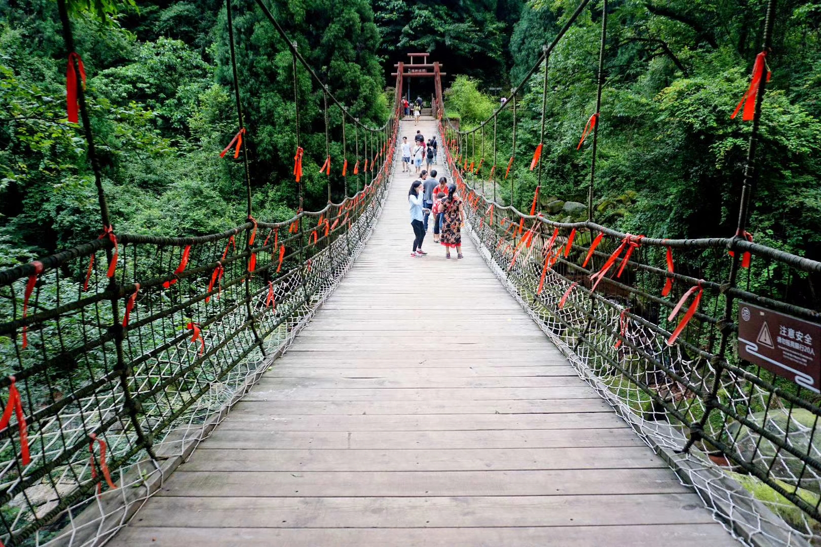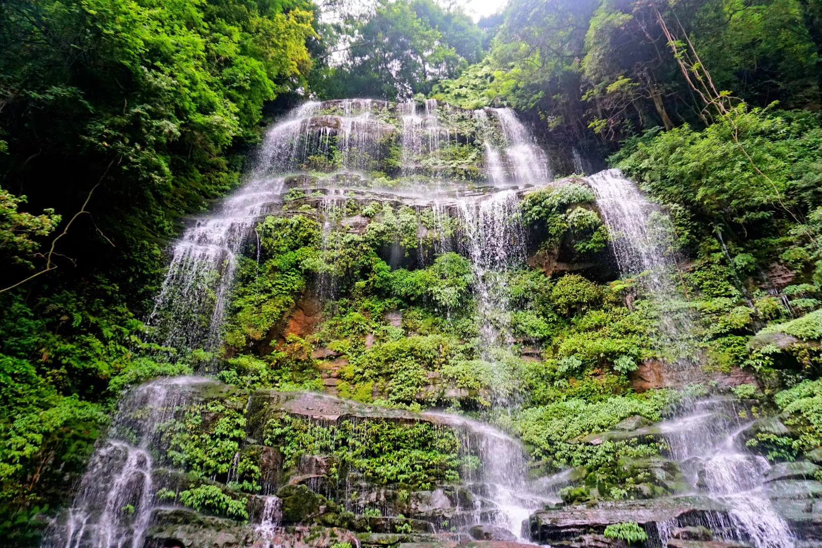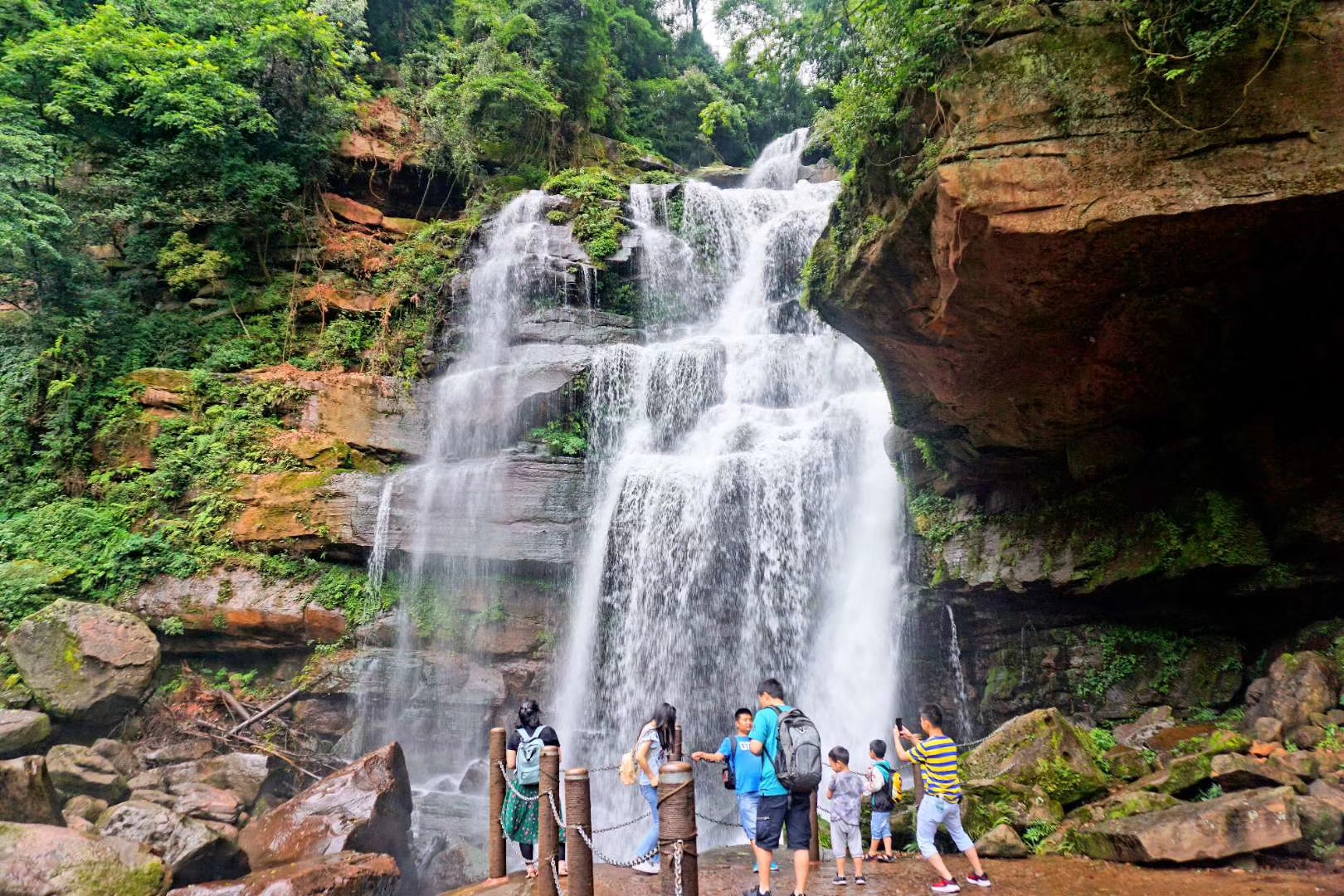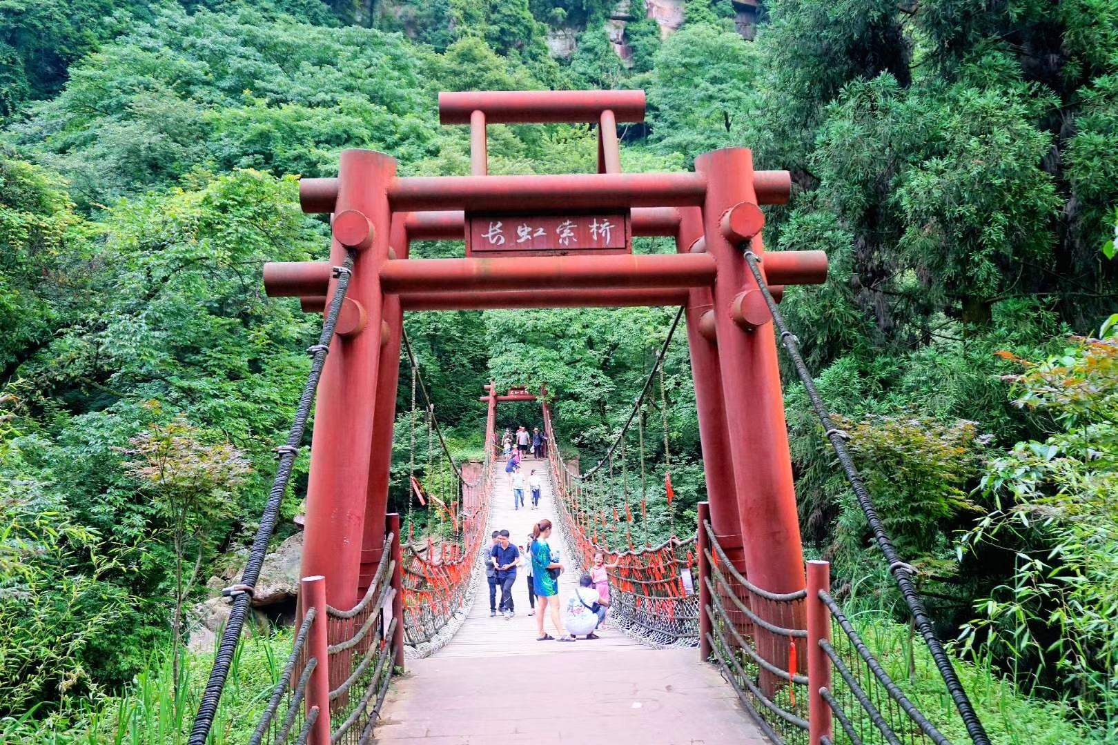 长虹瀑布高200米,绿树掩映,洋洋洒洒。
