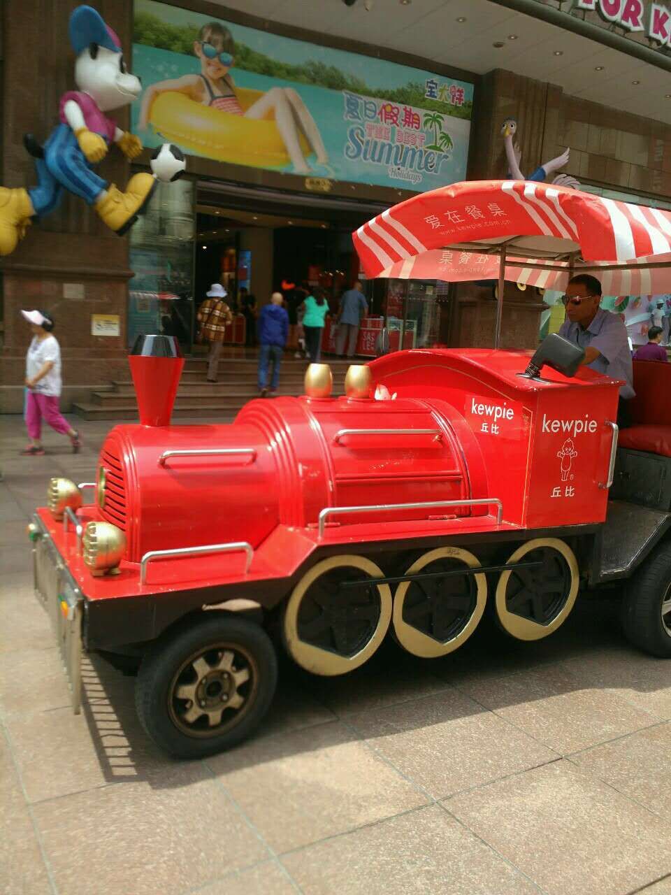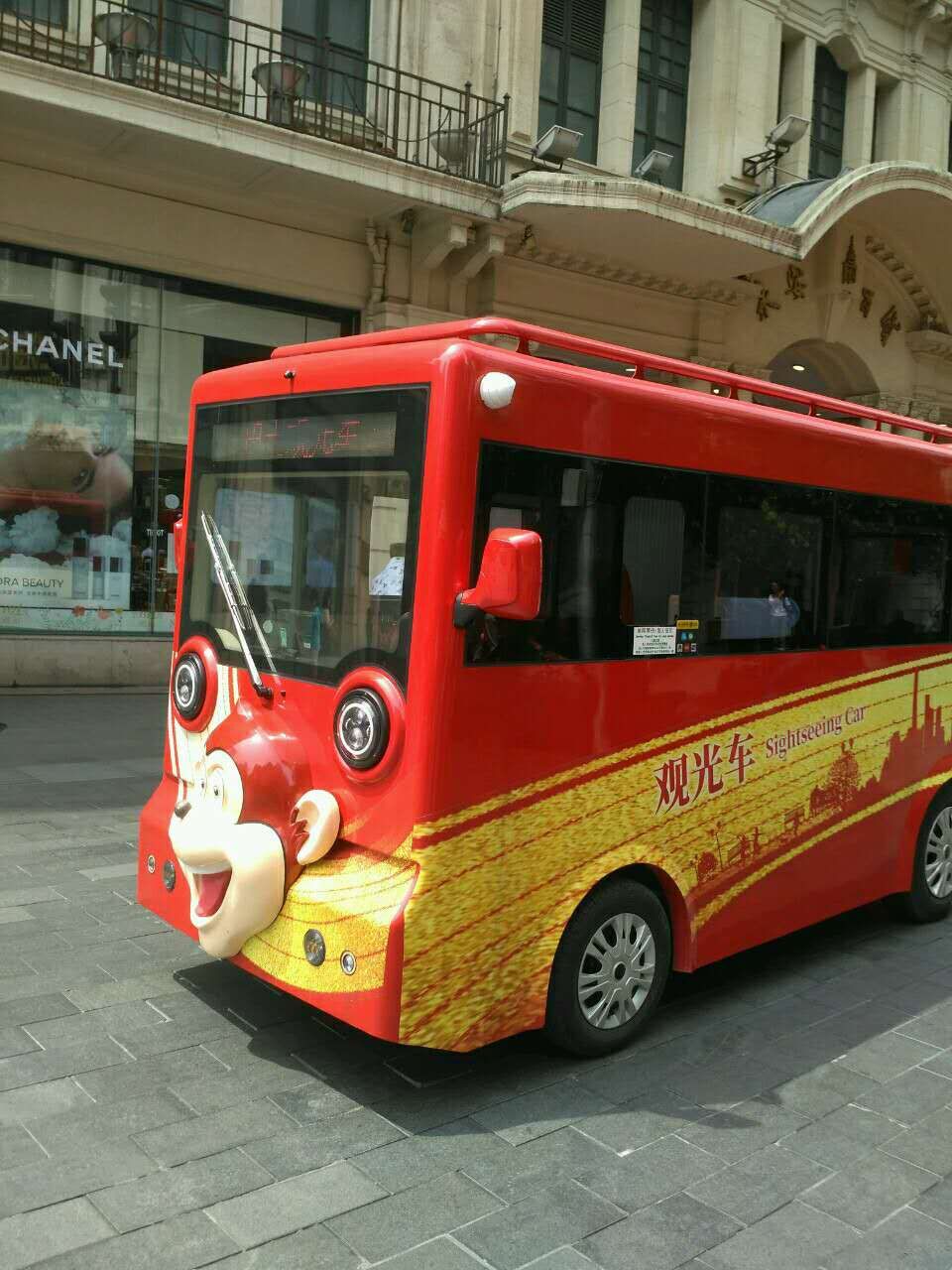 引人注目的是:在这里穿梭着造型可爱的游览车,有卡通人脸造型的,有小火车造型的,还有长方形的车型……,游览车色彩斑斓,红的,兰的,红绿相间的。询问民警游览车票价多少,哦,原来才5元!一个字-“值”!