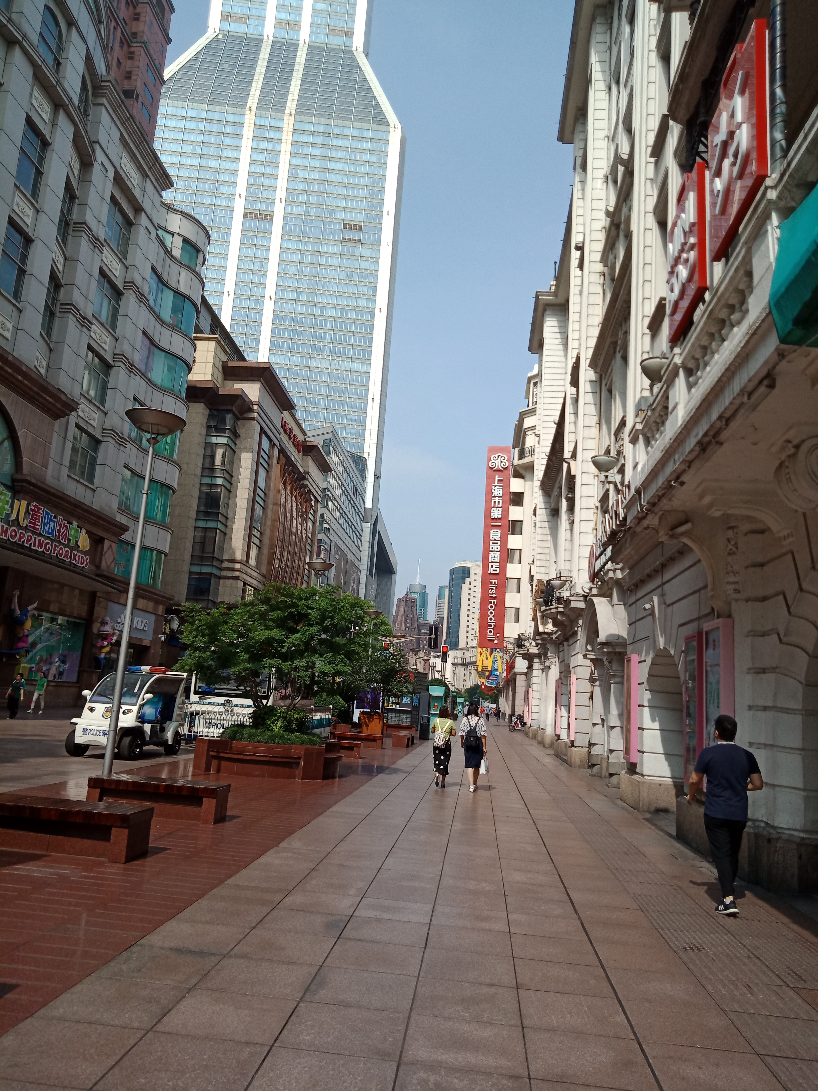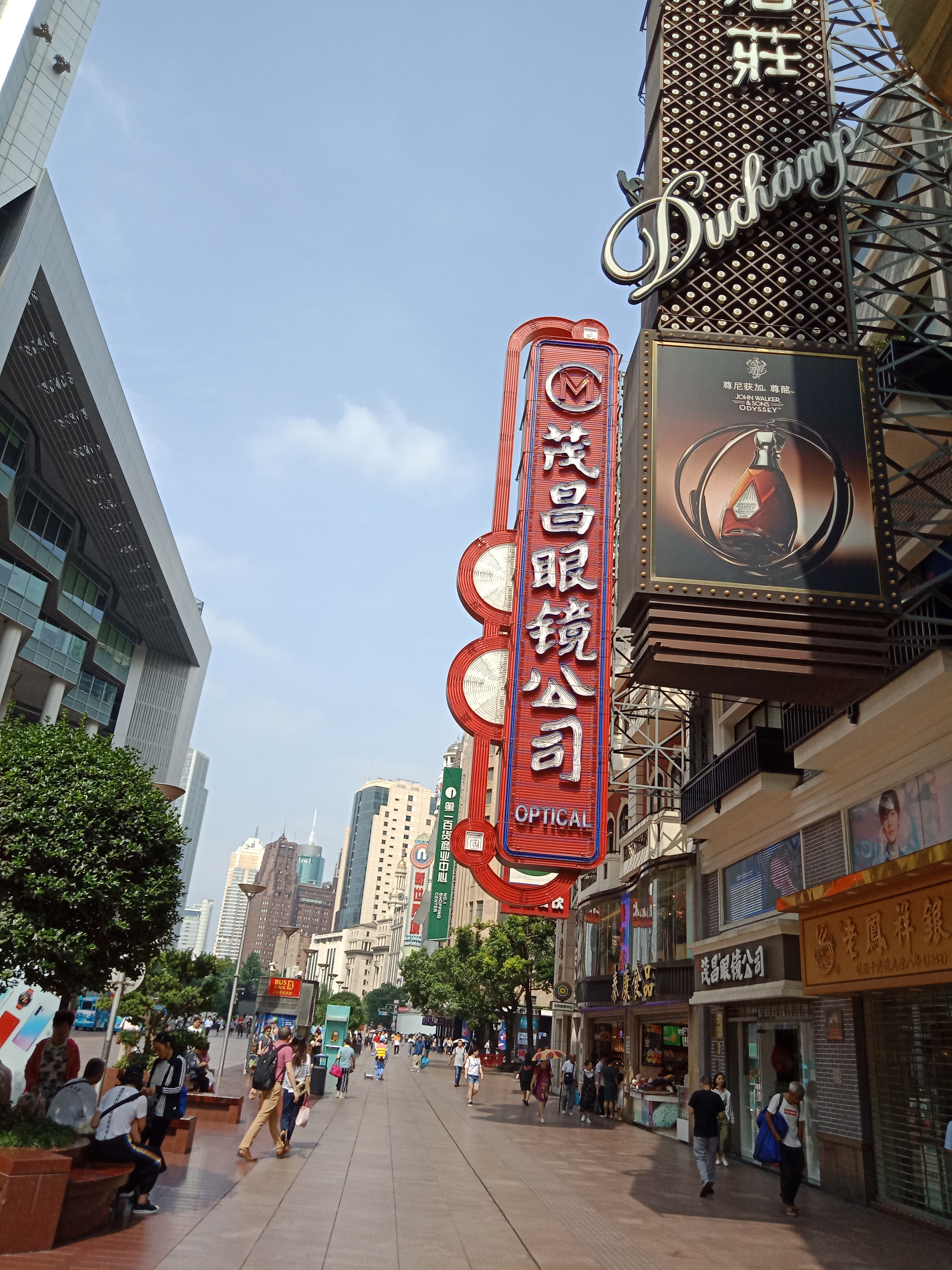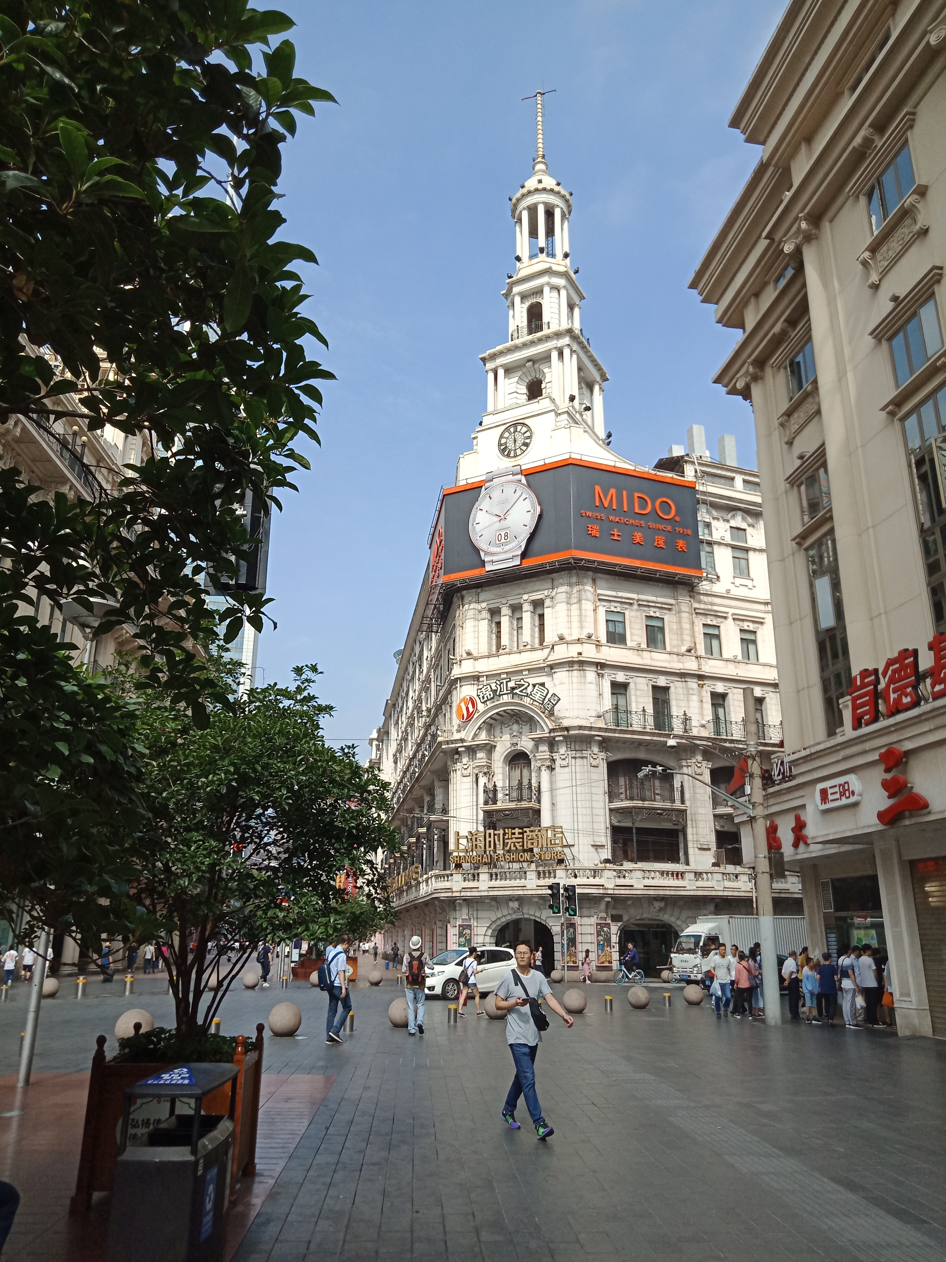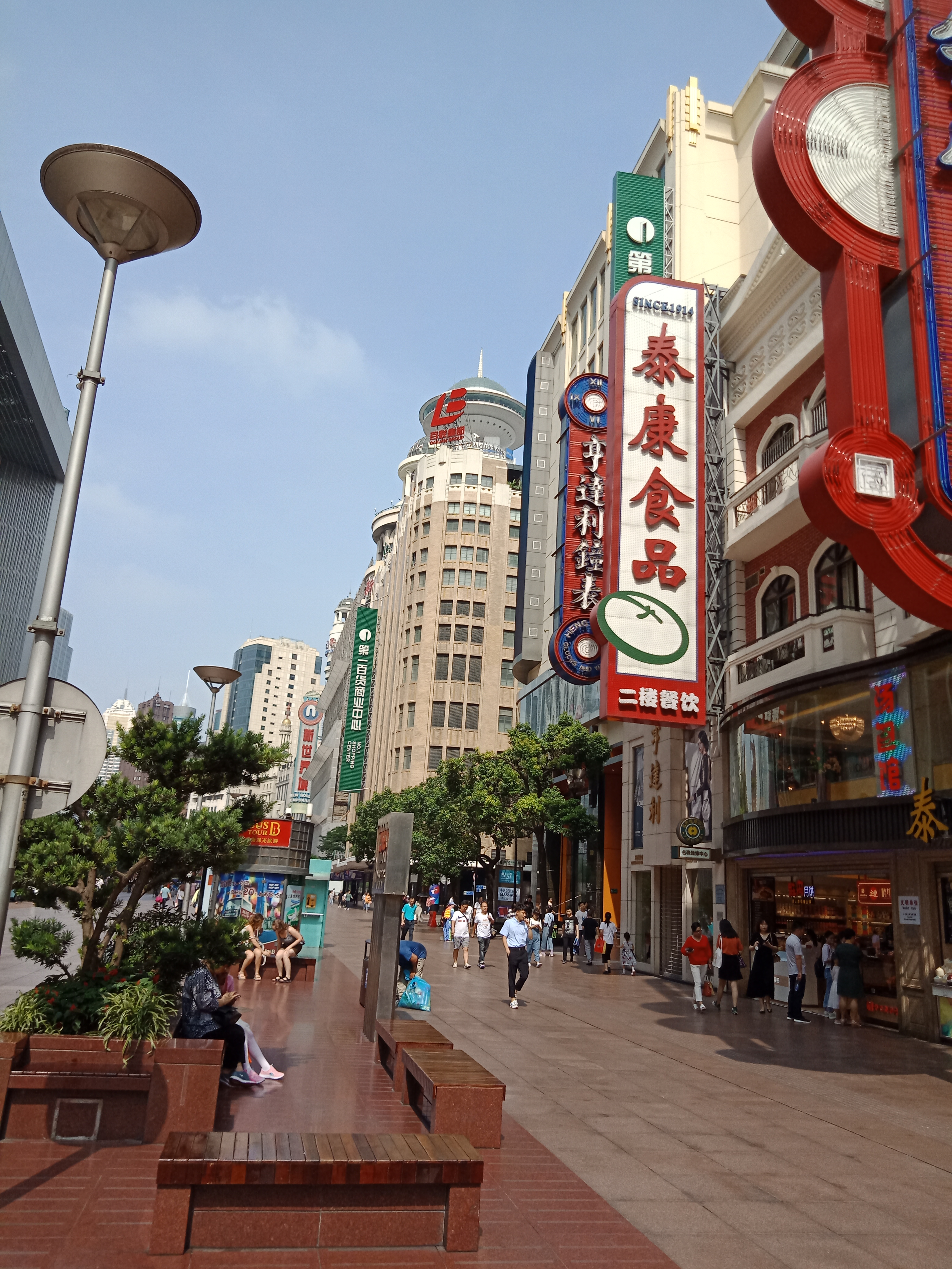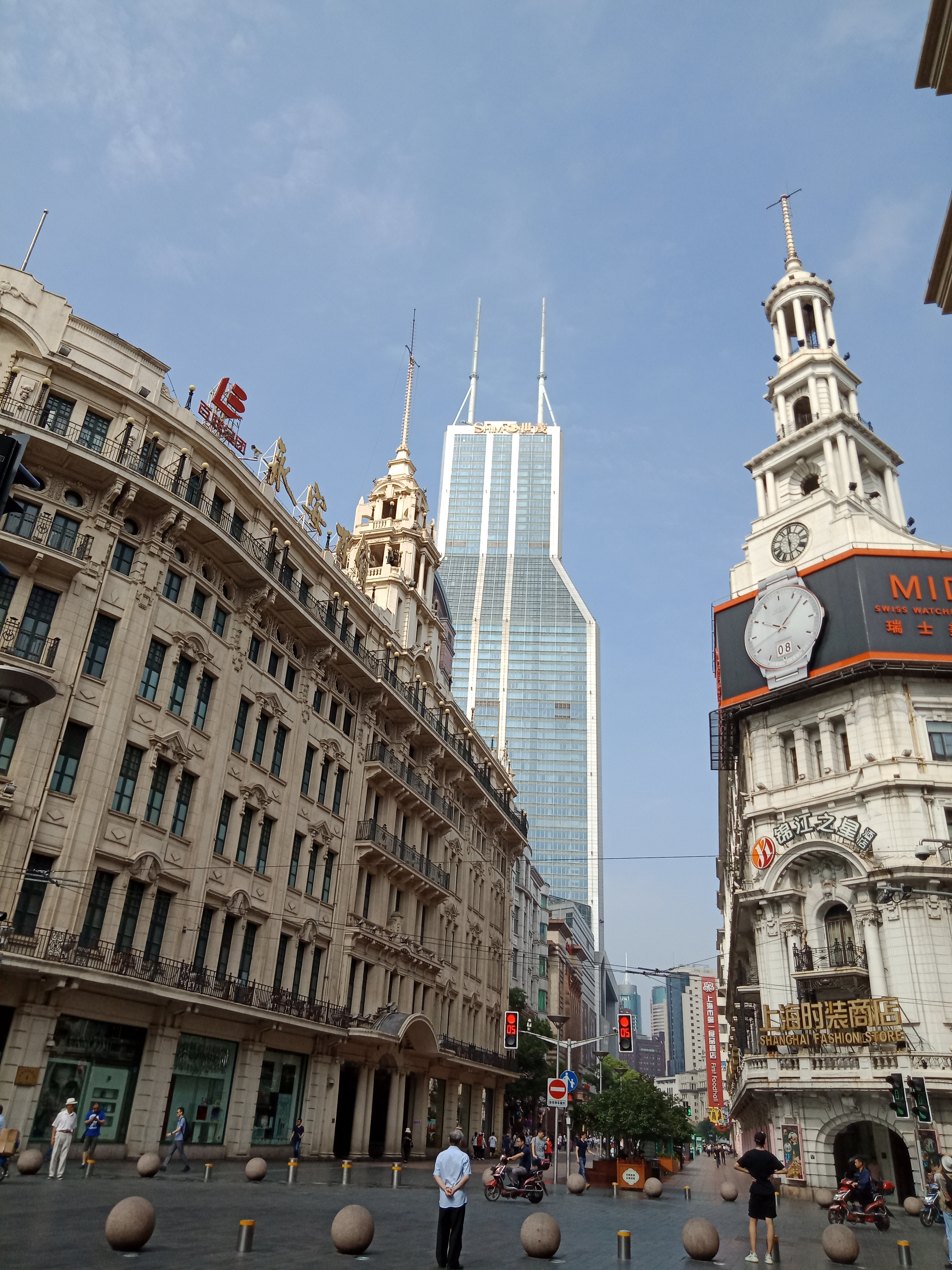初夏时节,来到南京路步行街,唯见蓝天白云映衬下,各式高楼昂然挺立。