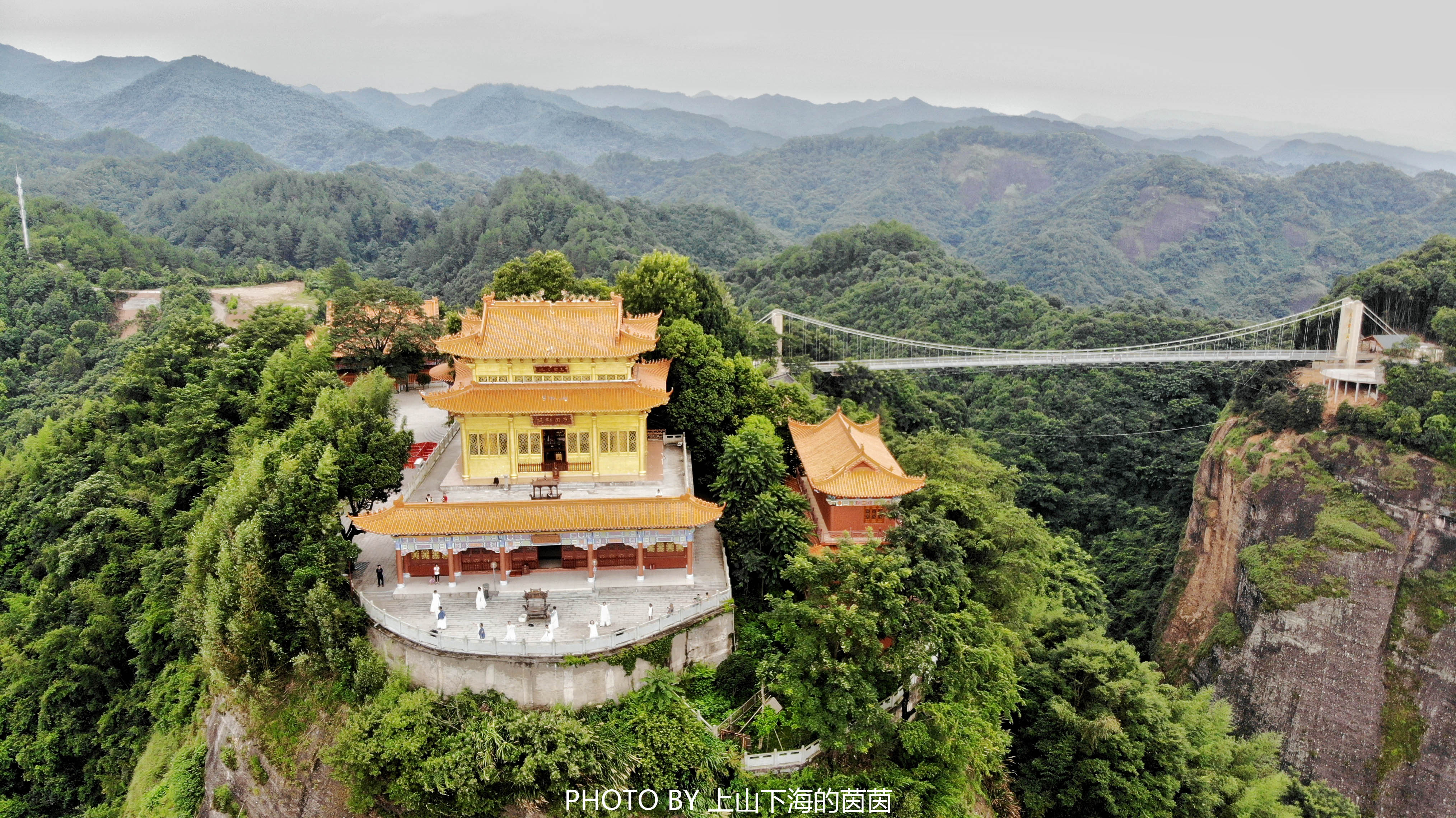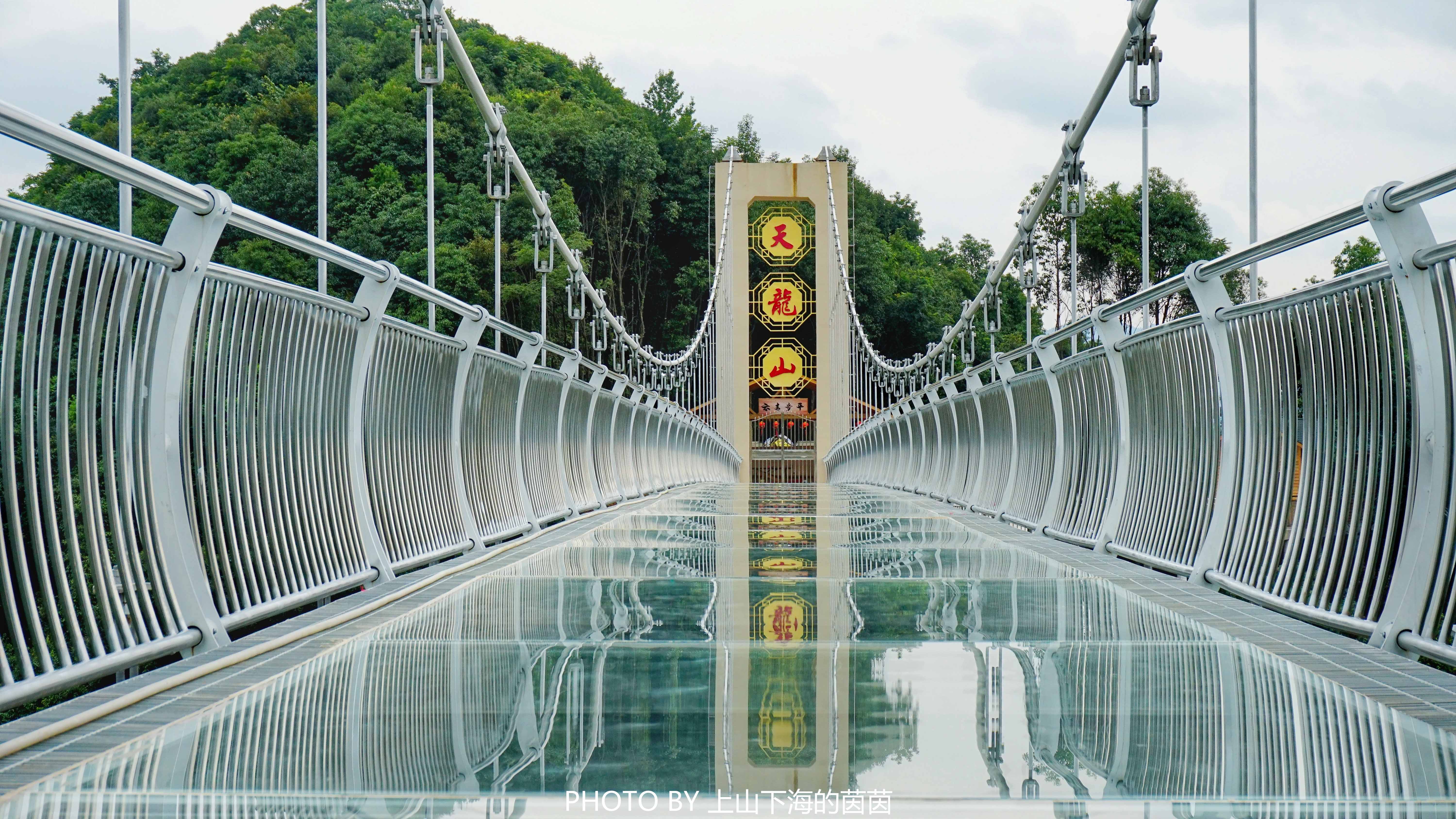 #适合拍照的奇怪建筑#130米长、150米高的江西赣州全南县天龙山玻璃桥霸气登场!选址就很特别,一边是建在悬崖之上的天龙山寺,大有会当凌绝顶一览众山小的豪气!图二有亮点哦!猜猜白衣飘飘的仙女们在干嘛