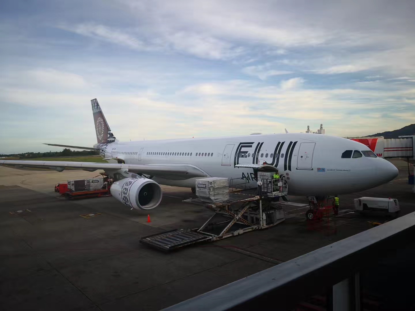 香港—楠迪(斐济),航班号FJ392,飞行时间约10小时。飞行过程中会提供2顿餐食,当日晚餐和次日早餐,并提供斐济水、红酒、果汁、可乐、雪碧、咖啡等饮料。(飞机上无泡面提供)。