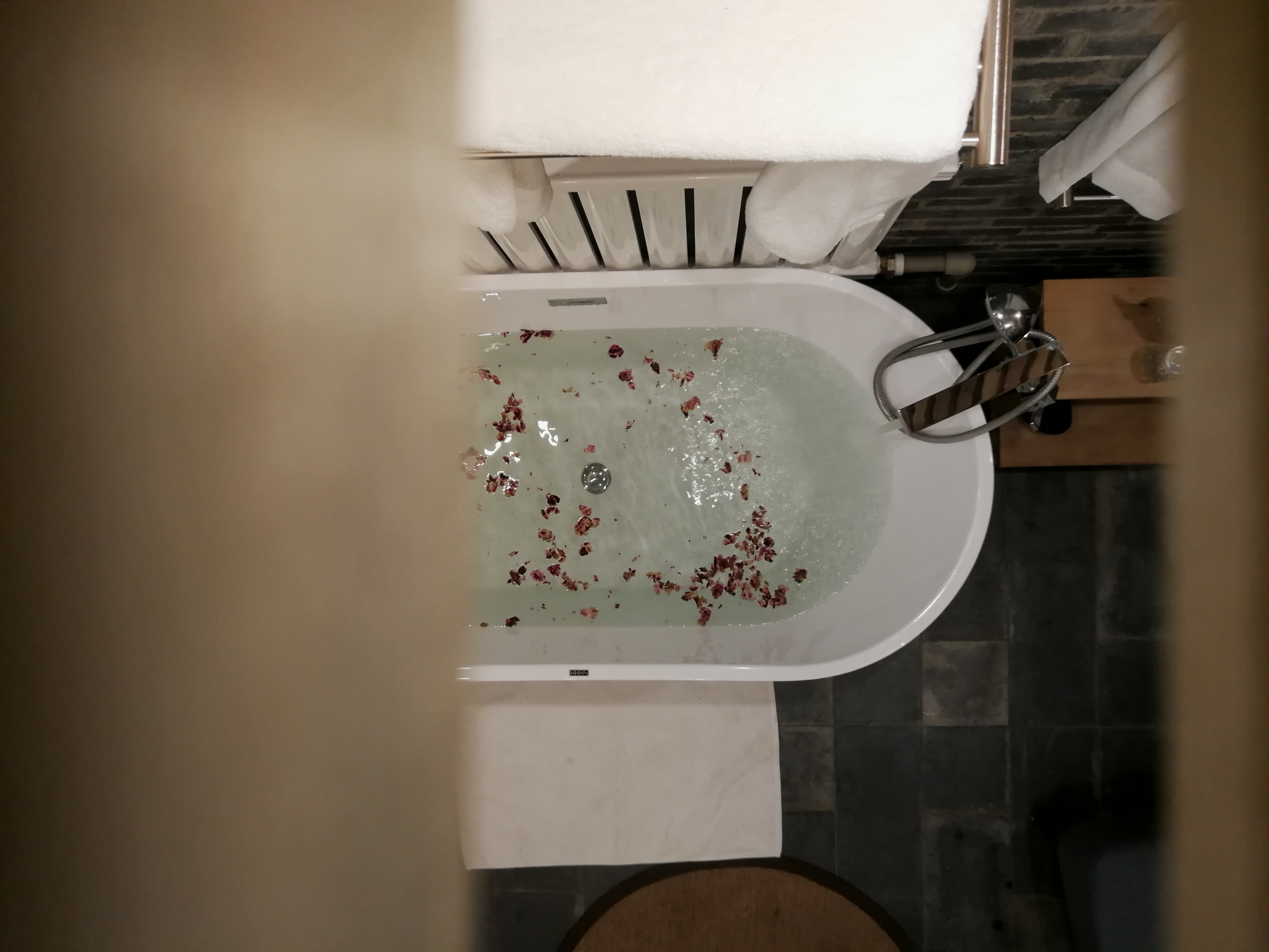 2.房间内适合拍照的浴缸还很贴心配有一罐玫瑰花瓣,泡个花瓣浴吧!