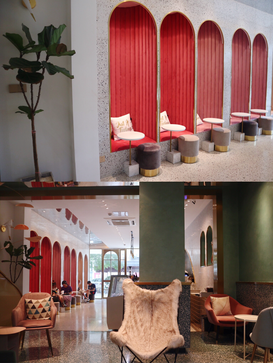 🍰装饰:这家店的装修风格偏复古,有点偏美式,看起来很高级。它不像普通的网红少女店只有粉色,这里设计风格简约却不浮夸,给人不一样的感觉,这样的店面拍照分分钟出大片。最关键的是即使是周末也没有很多人,比较安静。唯一的缺点是这家店的二楼不开放。