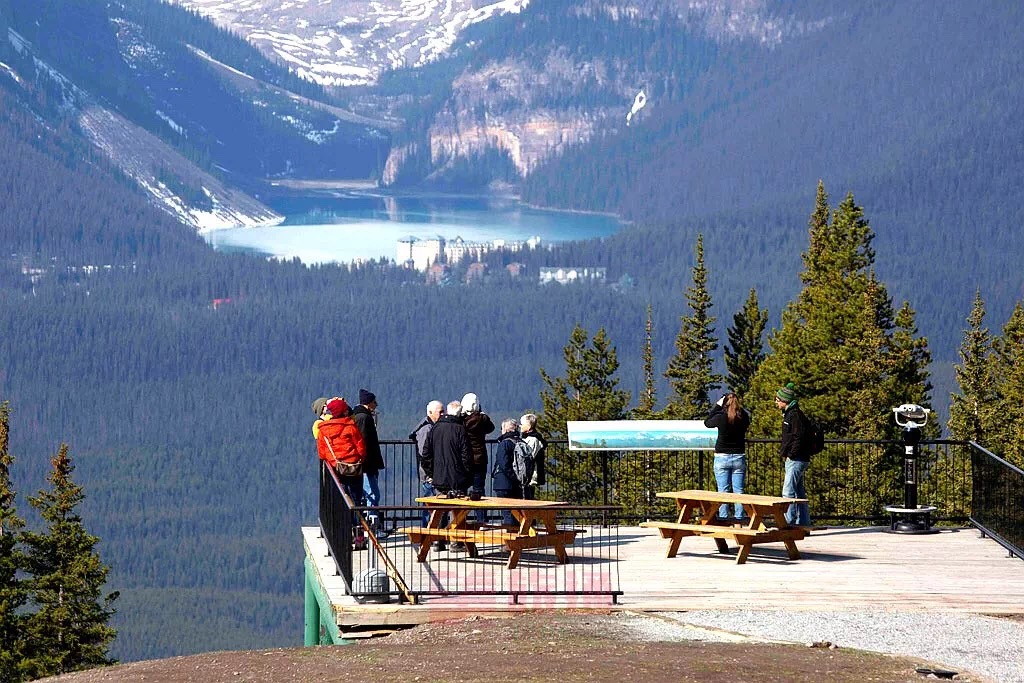 走在公园内的每一步,每一瞬都是独立无二的风景。茂密森林的包围下,露易丝湖澄净得就像一颗明珠,冰肌玉骨,超尘脱俗。 碧绿清澈的湖水,雄伟巍峨的维多利亚山,形成了一副完美的风景画。
