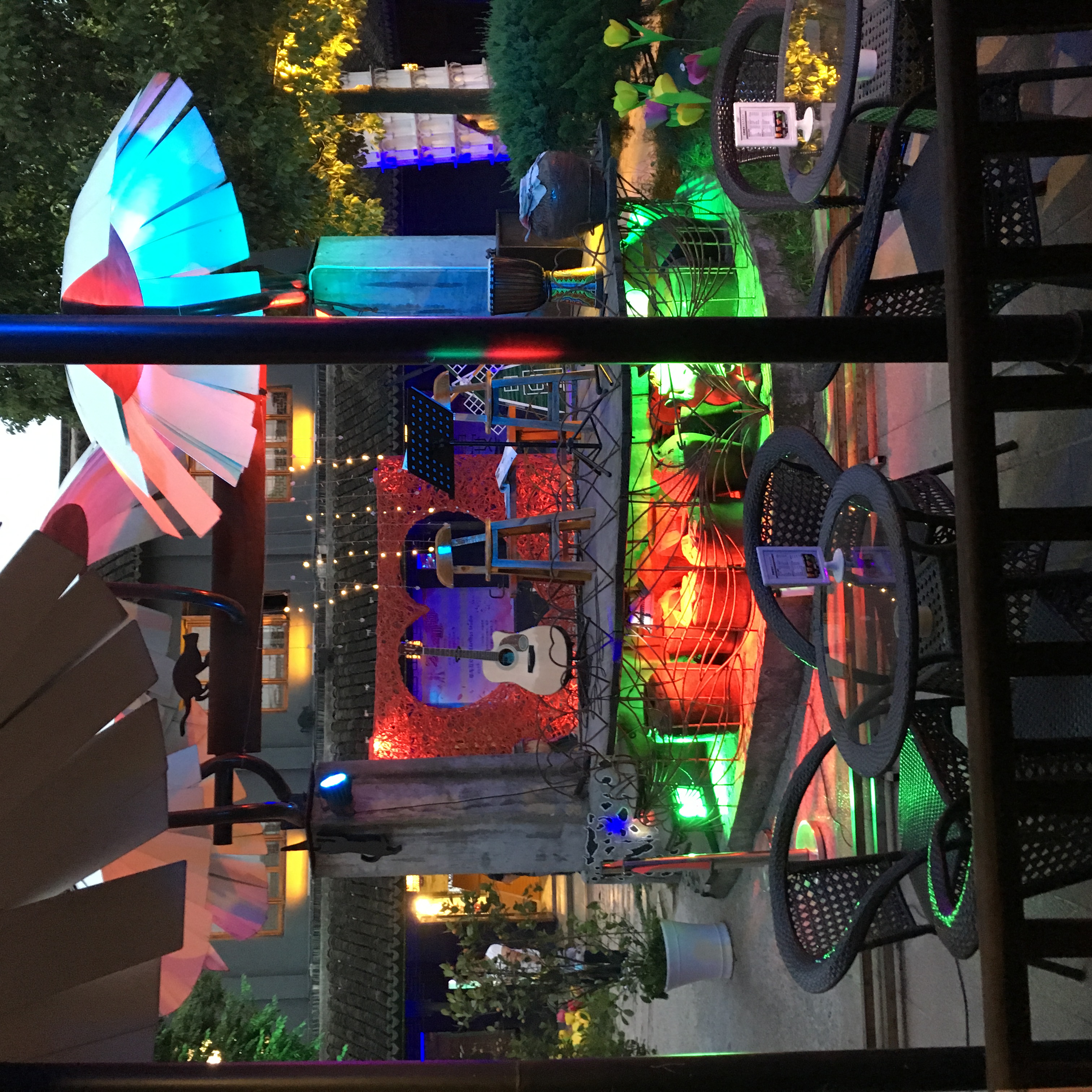 不断香火佛像敬,雕栏俯瞰浪中鲤。