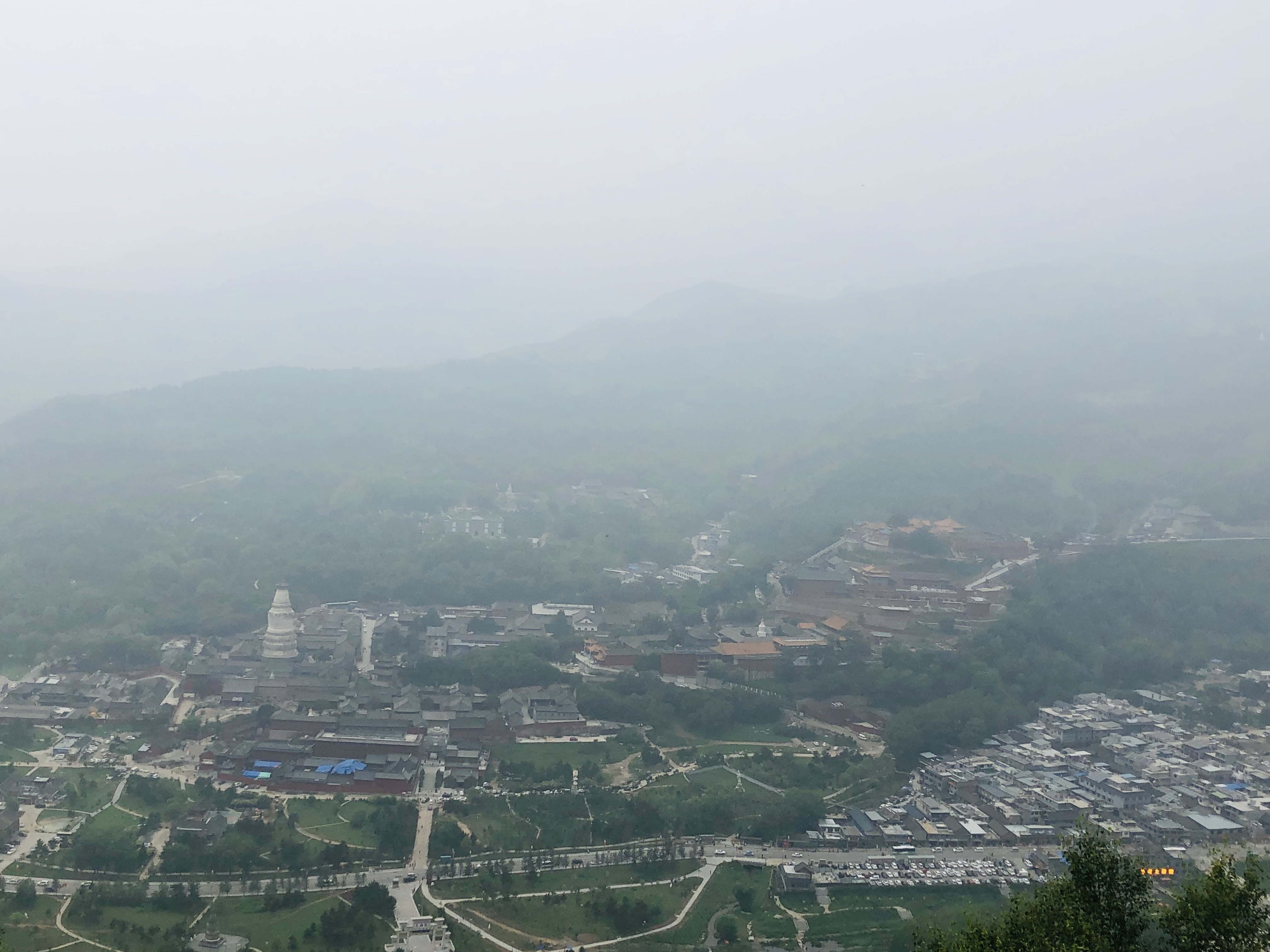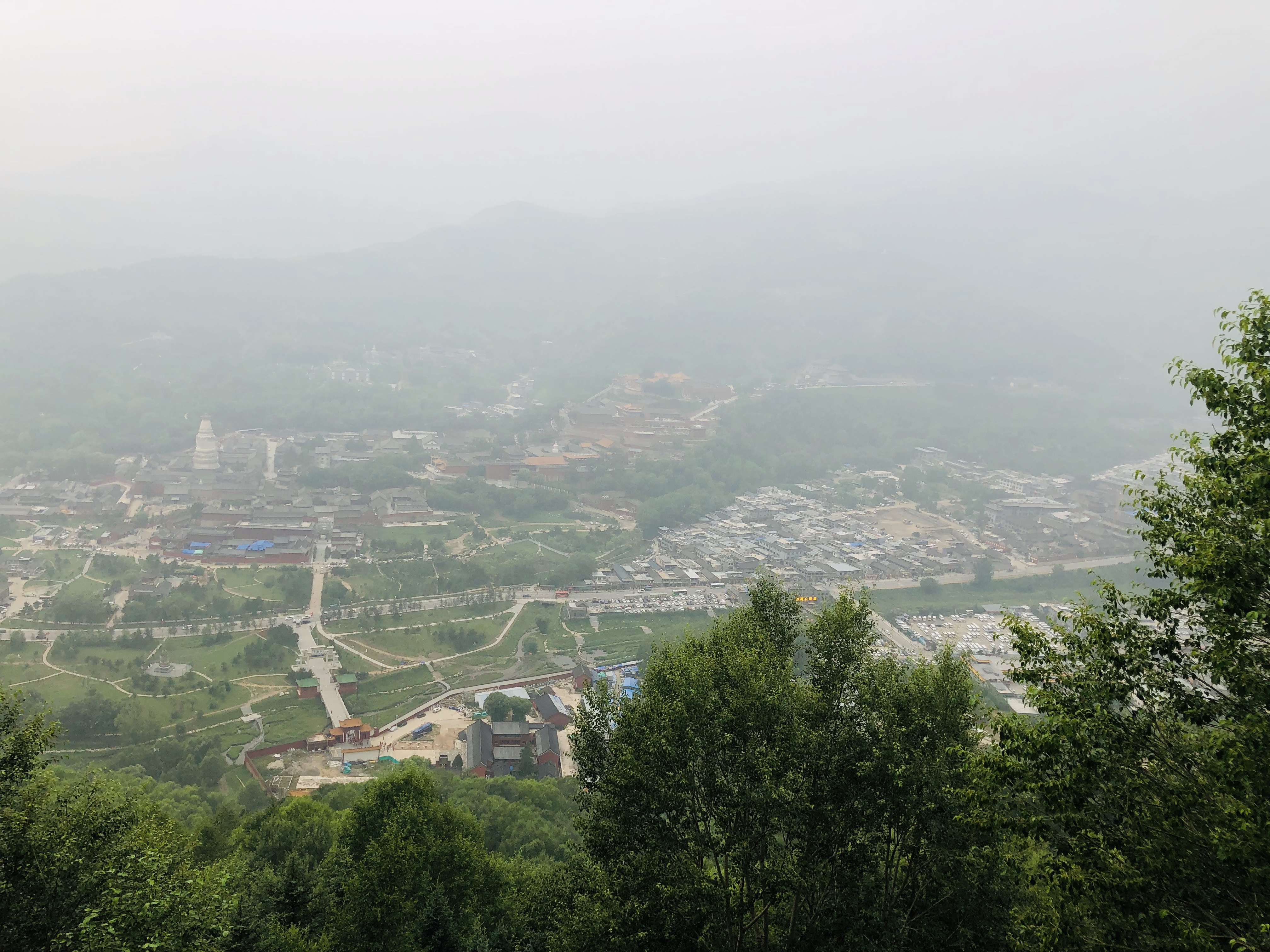 菩萨顶,也算小朝台,没有时间去台顶的小伙伴,可以选择去菩萨顶🙏,有1080节台阶,徒步至少半个小时以上单程,体力不支的小伙伴,可以像我一样选择往返缆车🚡,顺便可以欣赏五台山全景,夏天前往五台山,晚上根本不需要空调。