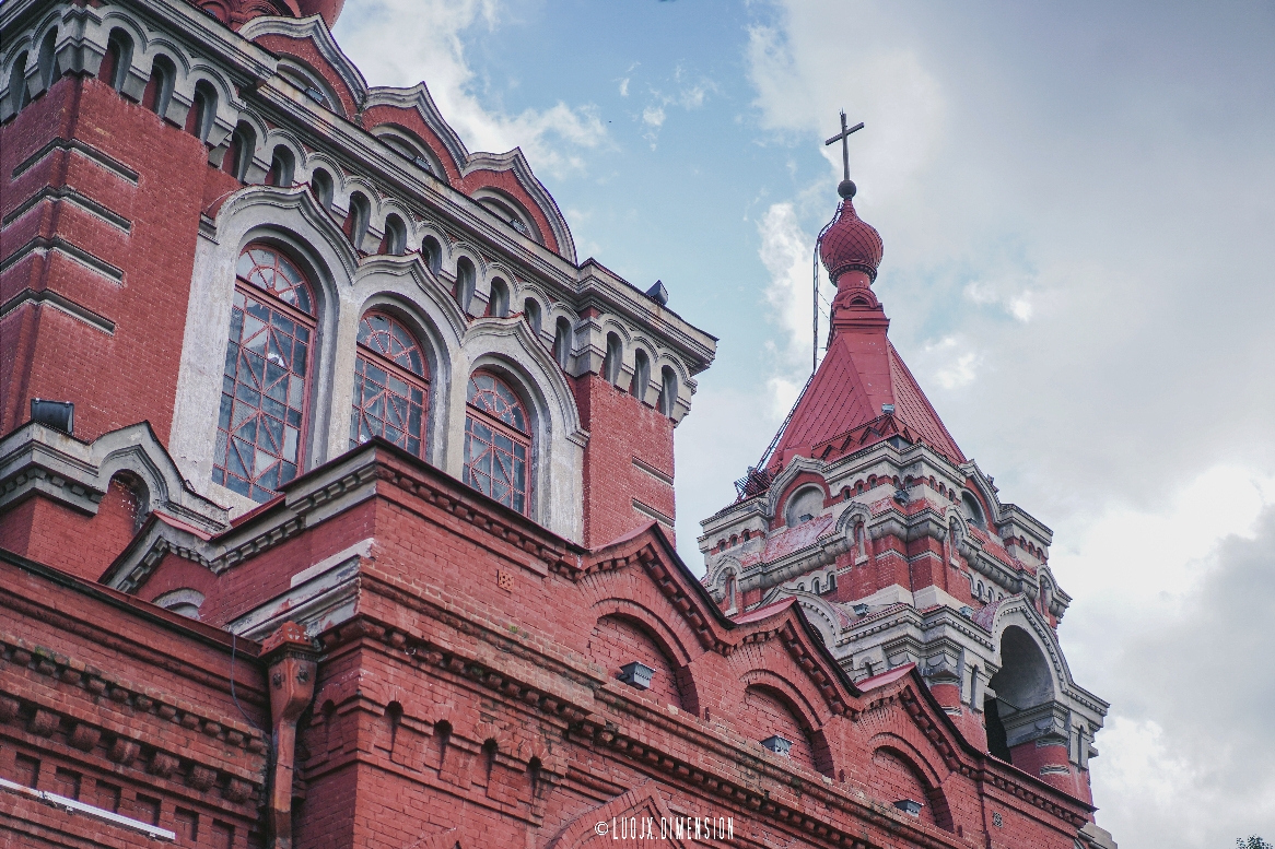在果戈里大街的另一端,还坐落着一座枚红色的圣母守护教堂,一所典型拜占庭式建筑的东正教教堂。