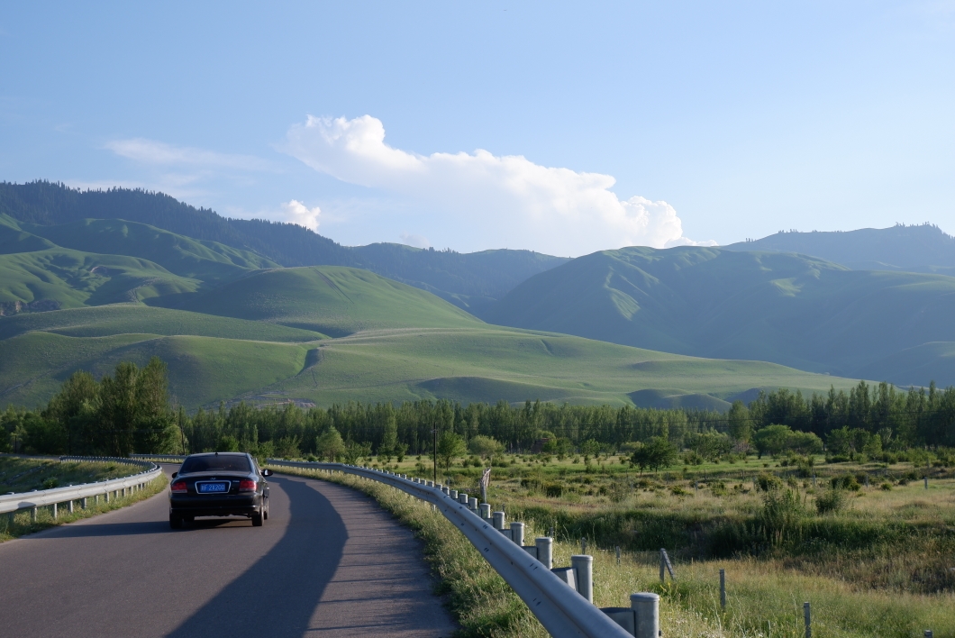 那拉提,字面意思是阳光照耀的地方,那拉提镇就在国道边,那拉提草原景区的游客中心也是,前往景区很方便,国道边是高山下的草原村庄,巩乃斯河横在中间,这里的房子偏爱紫色,民宿很接地气,还有无边的青稞地,看不尽的牛羊,日落很美,日常哪怕不进景区,也能找到很好的去处,不管太阳多晒,树荫下却很凉爽,多呆几天也无妨!#夏日无索不玩#