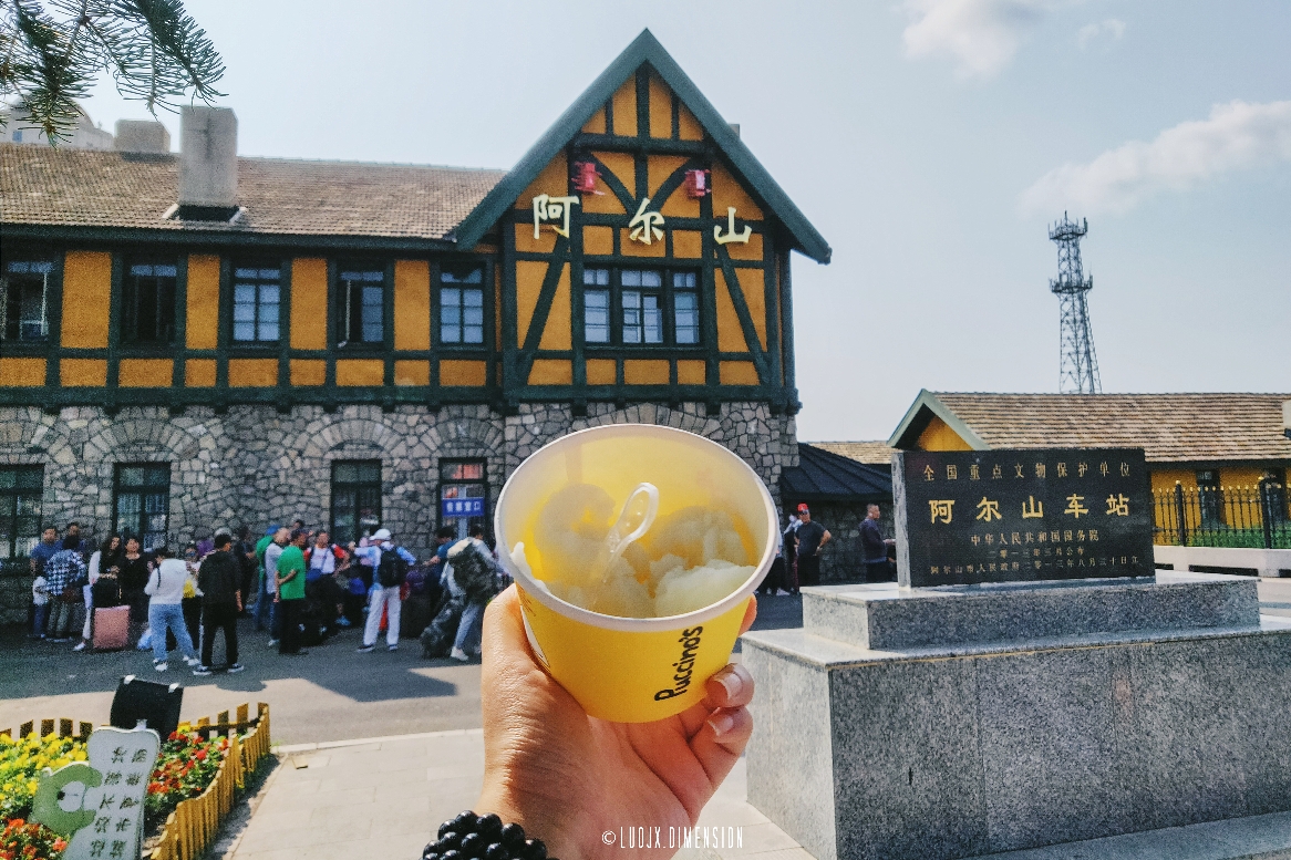 位于阿尔山城中的阿尔山火车站是每到这里的游客必打卡的地方,建于1937年,是一幢东洋风格的低檐尖顶二层日式建筑,一层外壁周围是用花岗岩堆砌的乱插石墙,楼顶用赭色水泥涂盖。目前这栋古董仍在使用中,每天都有火车从这里发出和到达。