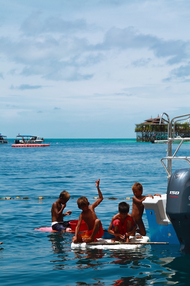 第一天坐快艇出海,首选了卡帕莱和马步岛。卡帕莱是一块沙洲,坐落在珊瑚礁🐚上。如果不是别墅小屋的住客,便不能登岛,只能远远的观赏。马步岛🌴则不同,每人给20马币的上岛费,就能探访神秘的巴瑶族🧜。