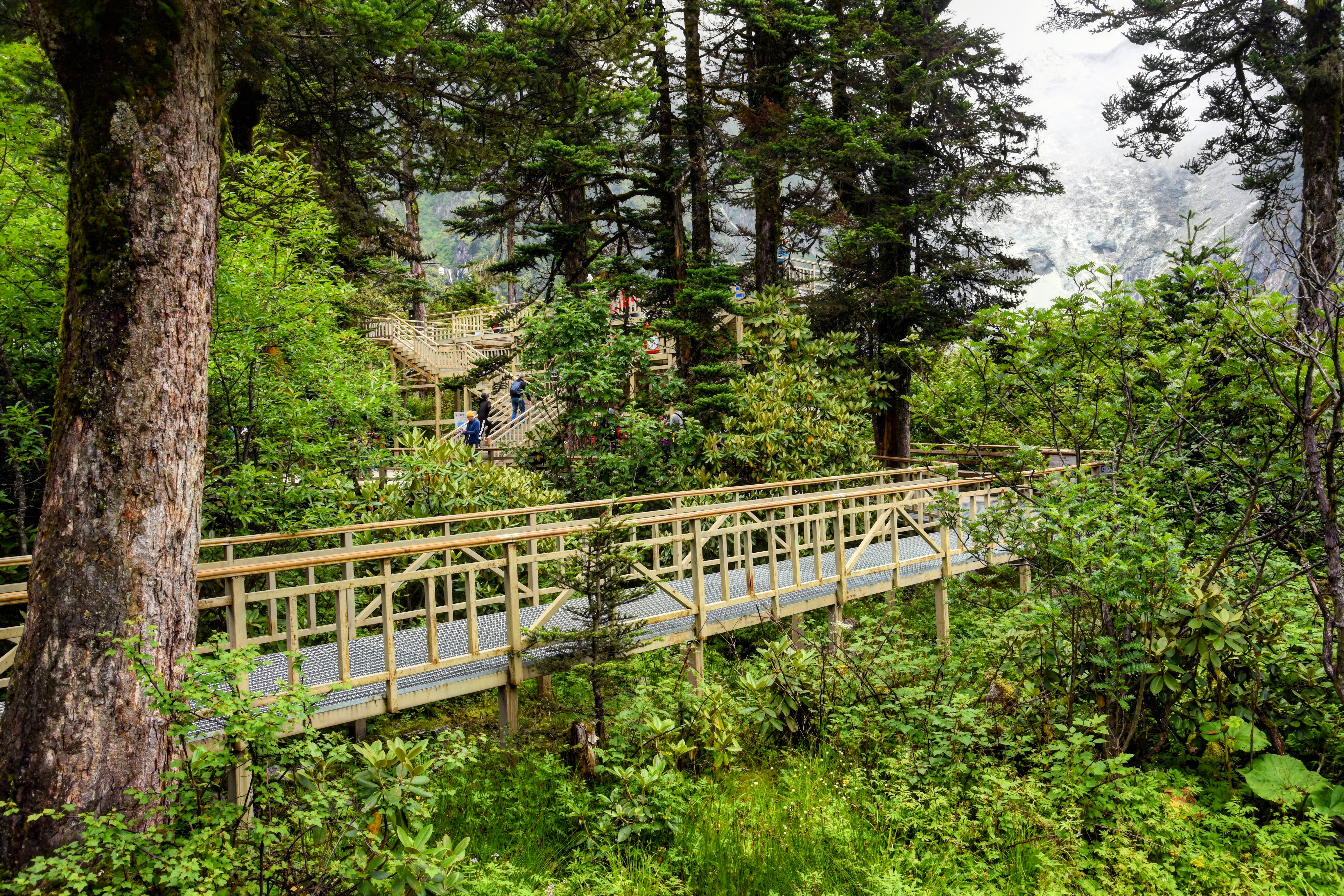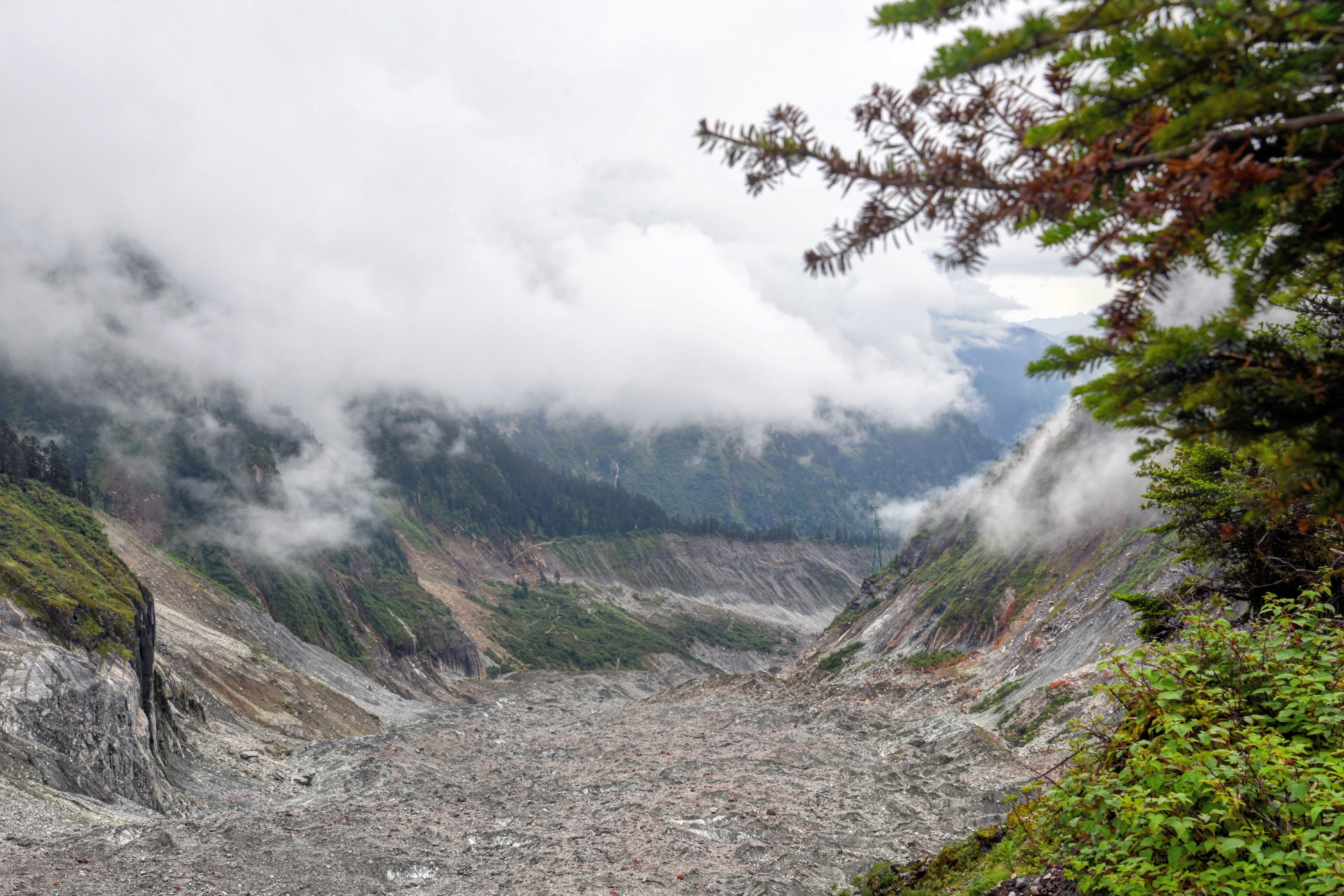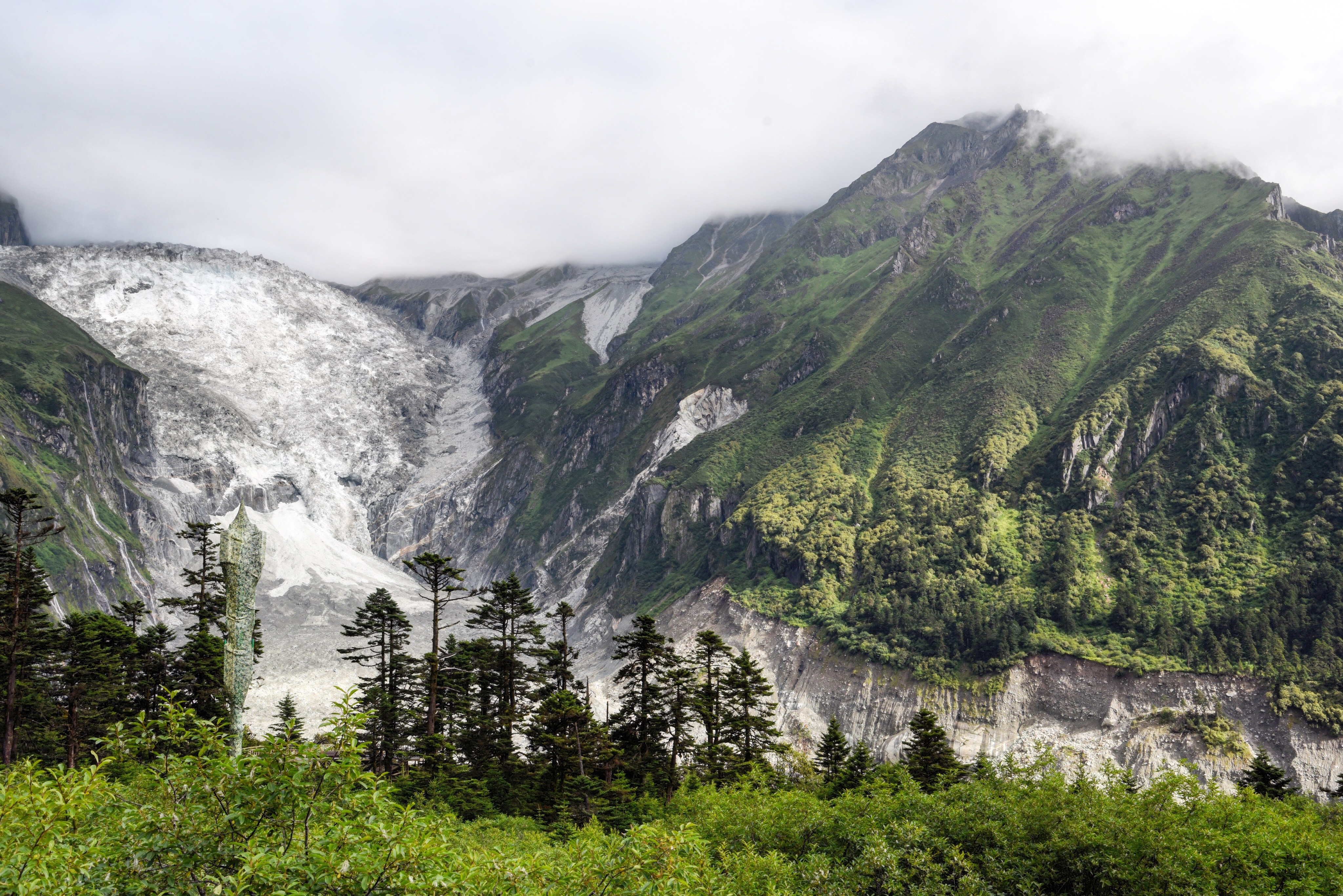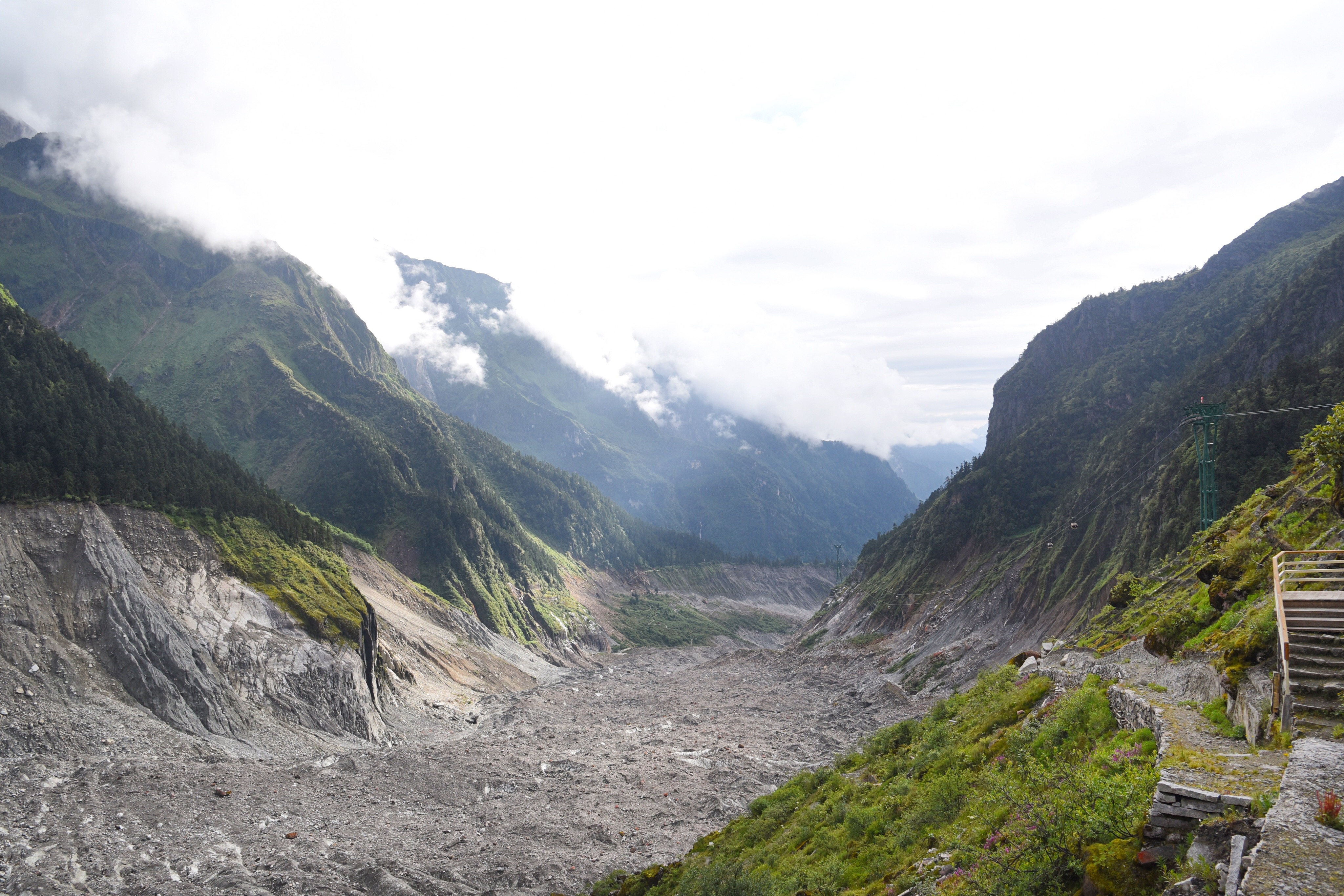 海螺沟以冰川闻名,不仅有中国至今发现的最高大冰瀑布,也是亚洲最东低海拔冰川的发现地。要说遥望冰川最好的地方的话,必须是四号营地的观景台了。