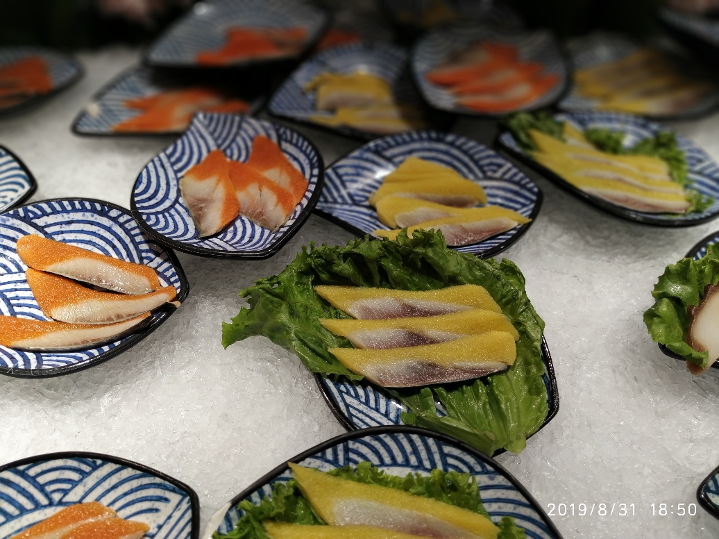 三文鱼和金枪鱼吃够了,鲍鱼很小很快就被抢光了,法式牛排很嫩,这家的蛋挞很值得推荐。