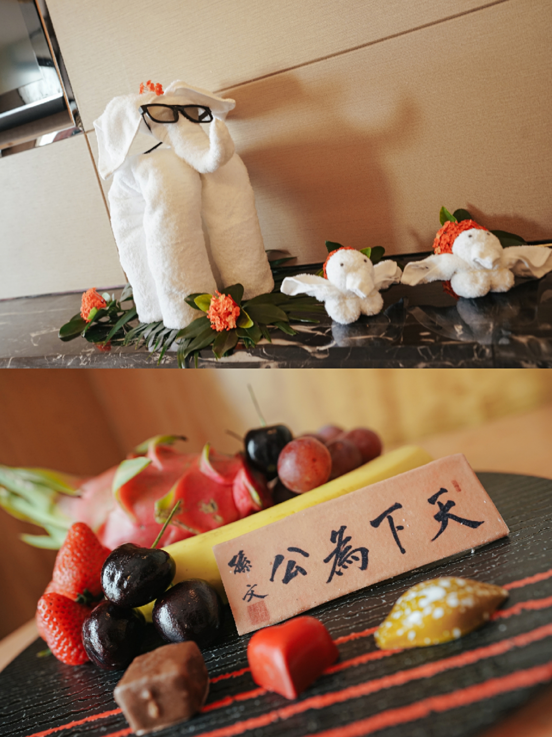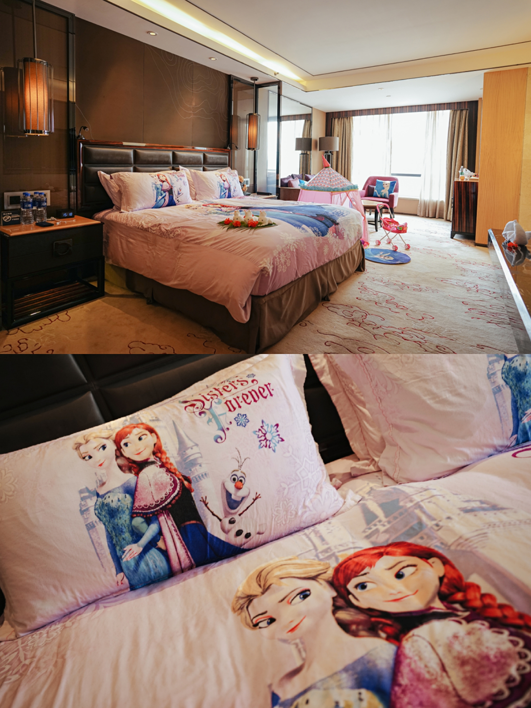 3⃣房间:我们入住的房间空间还挺大的,最特别的是酒店贴心给房间布置成了💦冰雪奇缘的主题,还有小孩子爱玩的小小婴儿推车,还为我们精心准备的水果盘,和毛巾的装饰,再次感受到酒店的贴心之举。