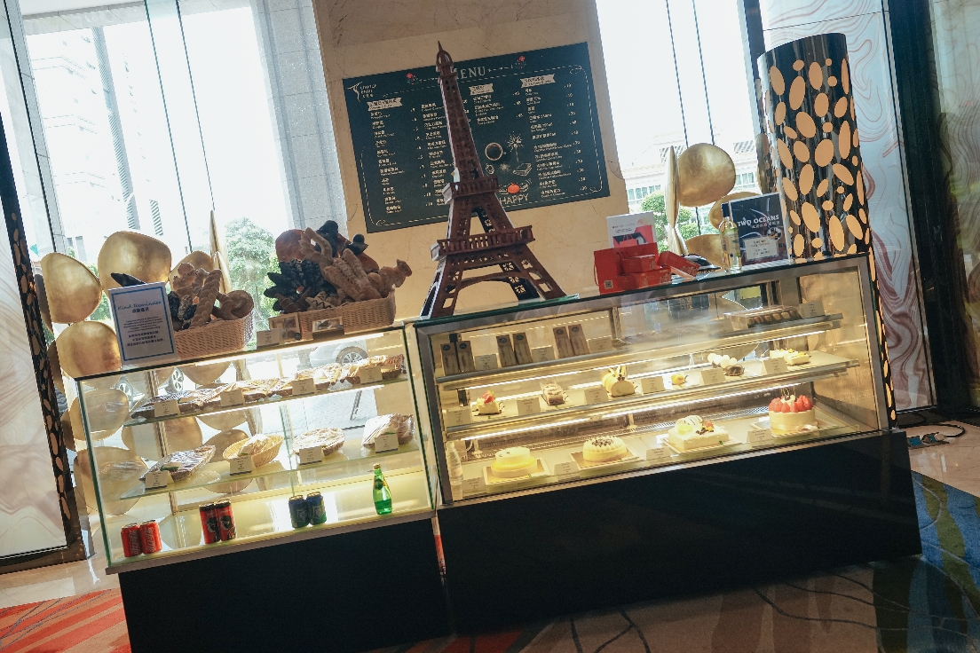 2⃣服务:到了酒店就有服务员来提行李了,在大厅办好入住手续就可以上楼,大厅的环境比较宽趟,一种温馨、宾至如归的感觉,右侧是饮品区,提供蔬菜水果的健康饮料和小蛋糕。