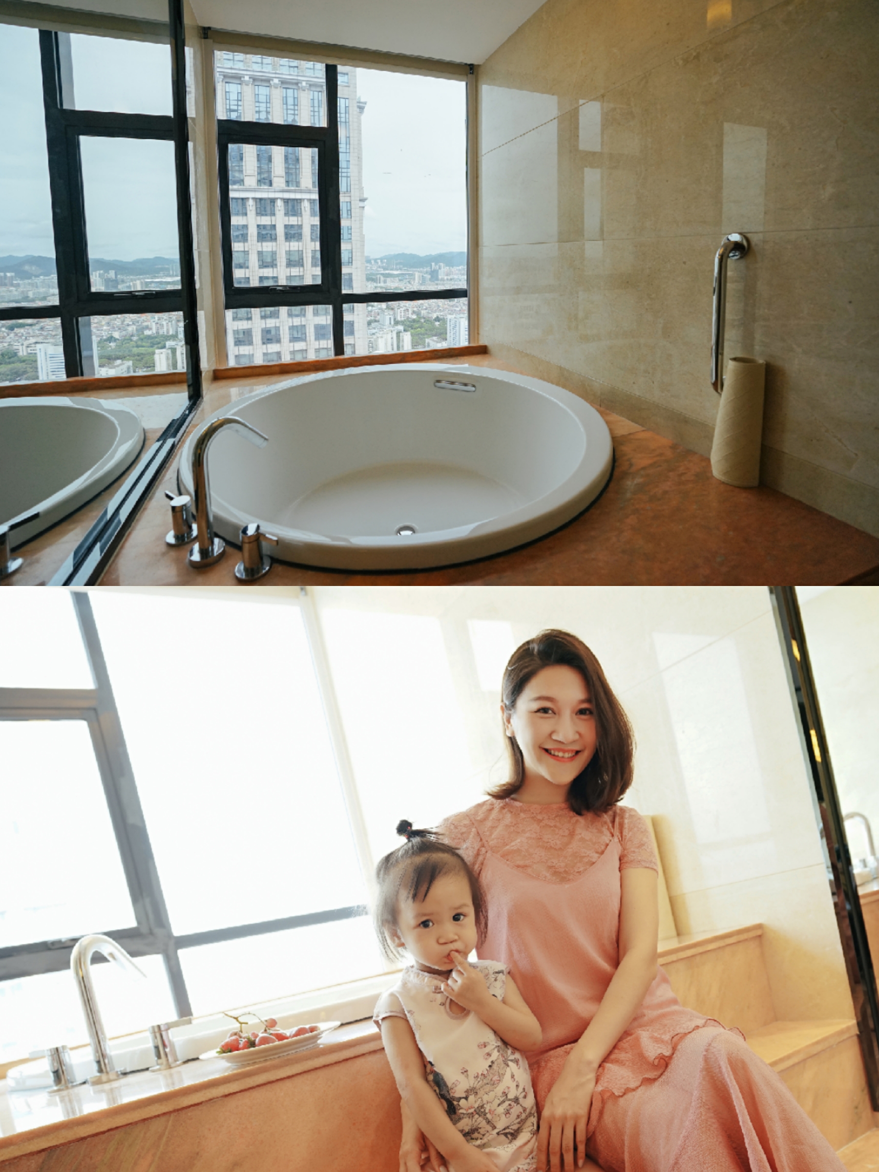 靠近窗口有浴缸,从窗口就可以看到外面的风景了,喜欢泡浴澡的妈妈可以静静地享受晚上的沐浴时光哦。