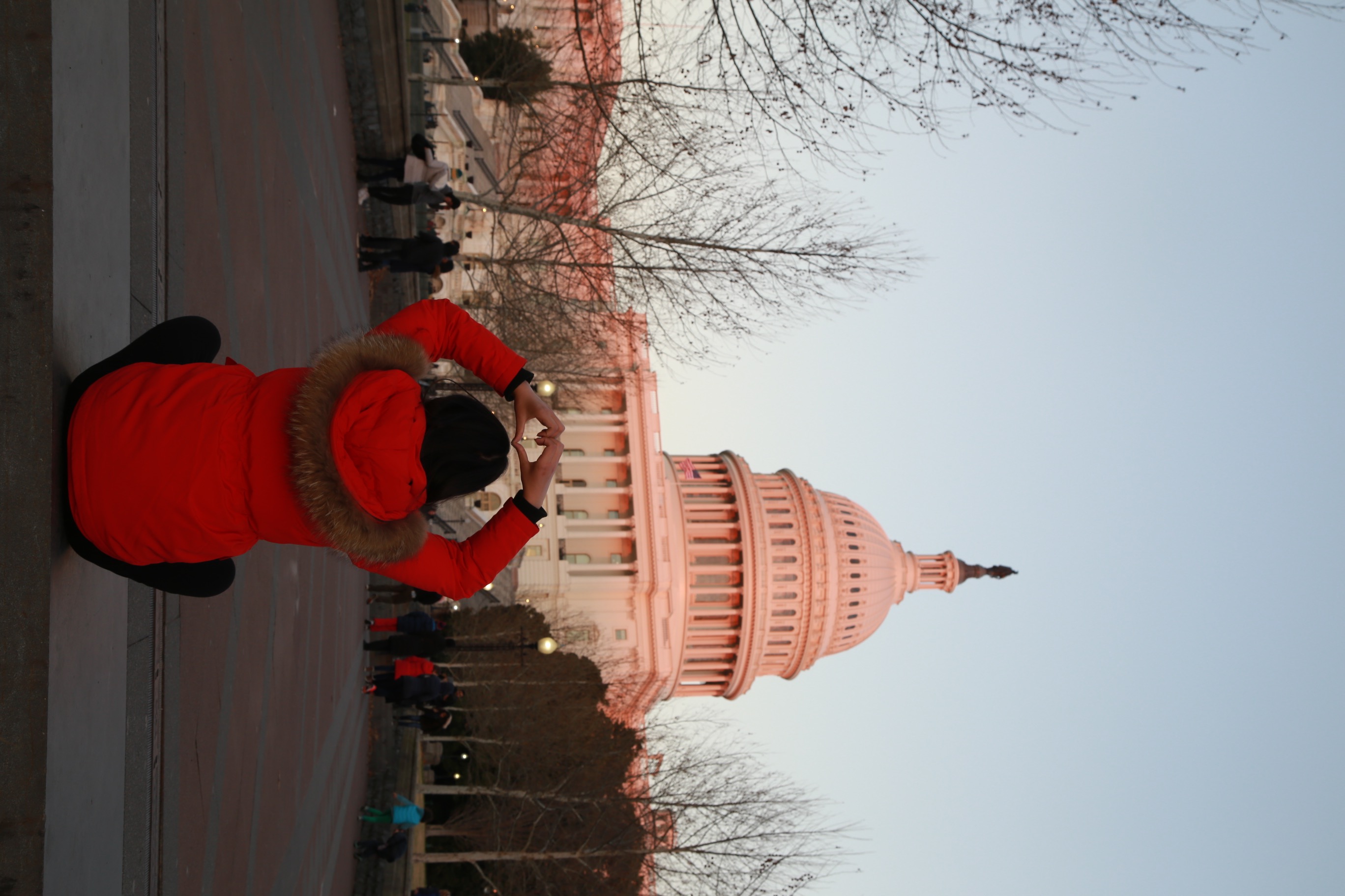 珍珠般洁白的 大理 石是我的偏爱,无论雕像,还是建筑,都自带晶莹剔透的纯洁和崇高之感。国会大厦气势恢宏,却精致得犹如一座面向东西、横跨南北的象牙雕刻,通体皎皎兮明净。