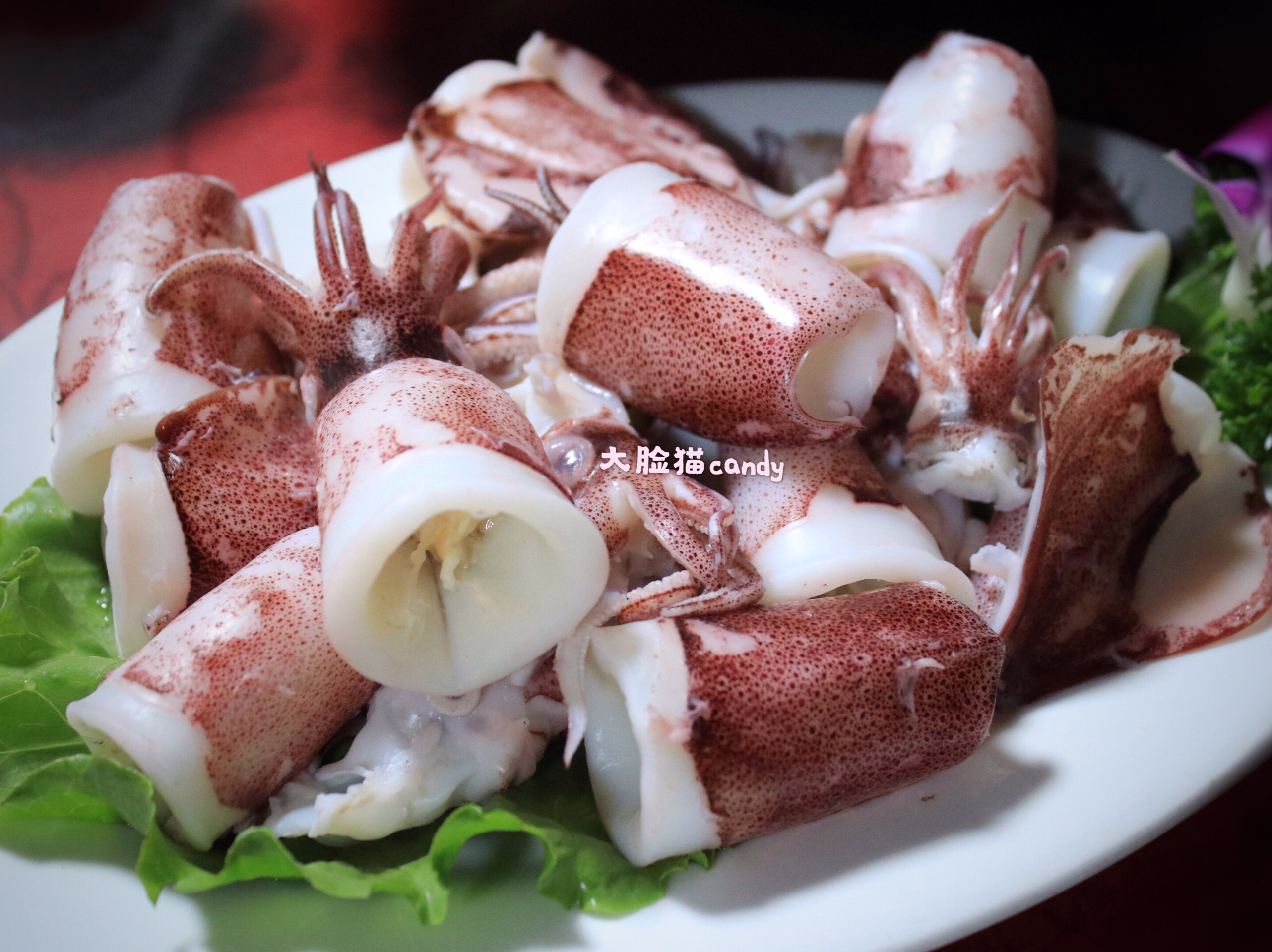 ✨视觉上白中带红,十分诱人。肥美的东山小管,最原始的白灼做法,蘸上特调的蒜蓉酱汁,头的部位带点膏,每一口都Q弹脆。