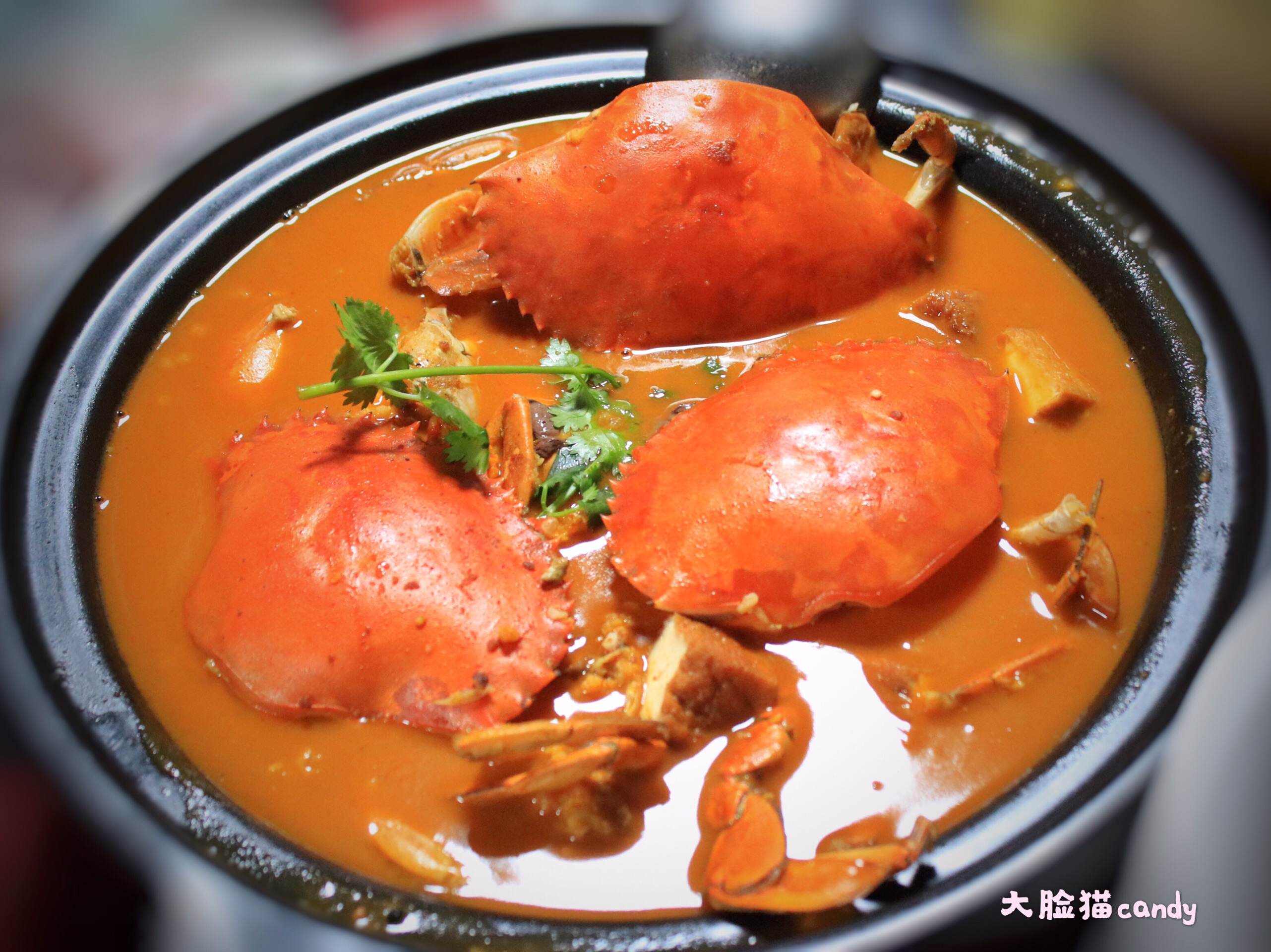 ✨肥美的膏蟹,切成小块,红膏黄膏红黄相间,色香味俱全。蟹壳硬而肉饱满,膏的鲜香融入沙茶汤中,沙茶汤又让膏蟹口感更丰富。原本普通的炸豆腐和鸭血,吸收了蟹的鲜和浓郁的沙茶汤汁,嫩滑而回味无穷。